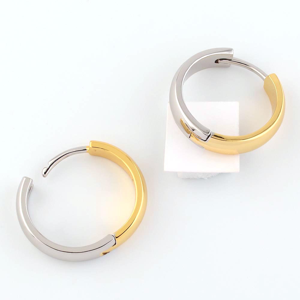 Серьги "кольцо" с родиевым покрытием 1 пара серебро -золото 35