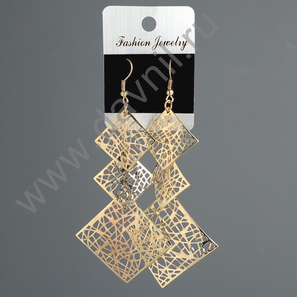 Серьги квадратики с паутинкой под золото 9 см