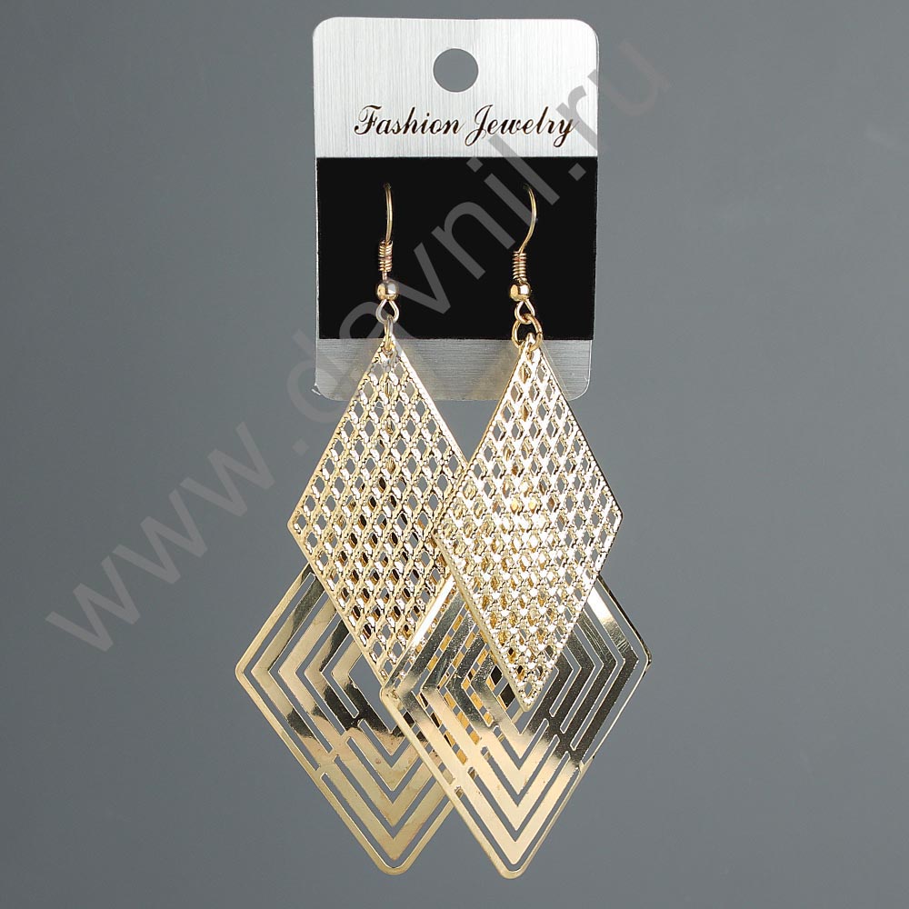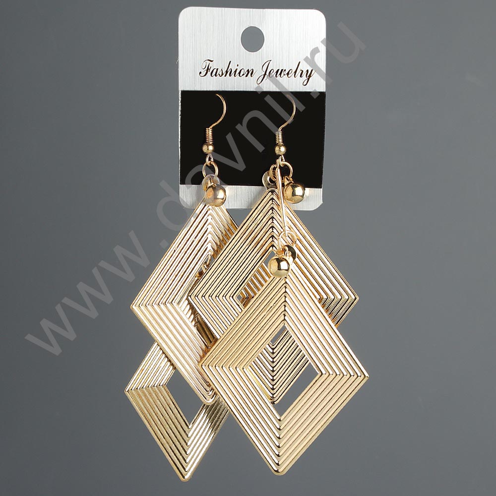 Серьги "Ромб" под золото 9 см
