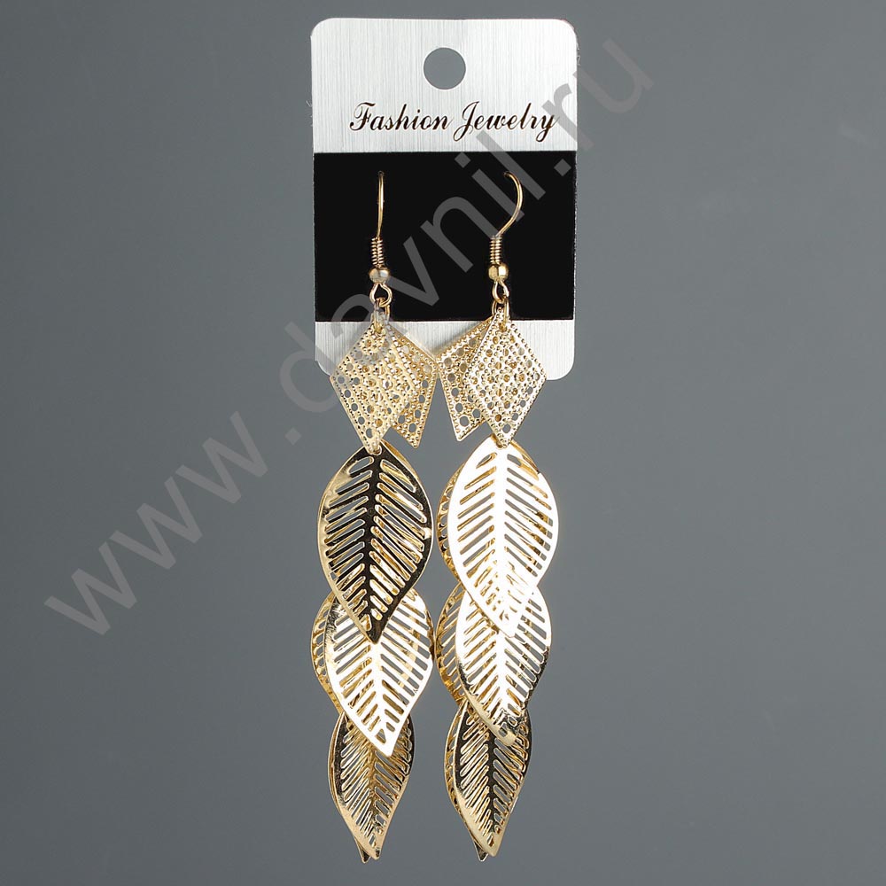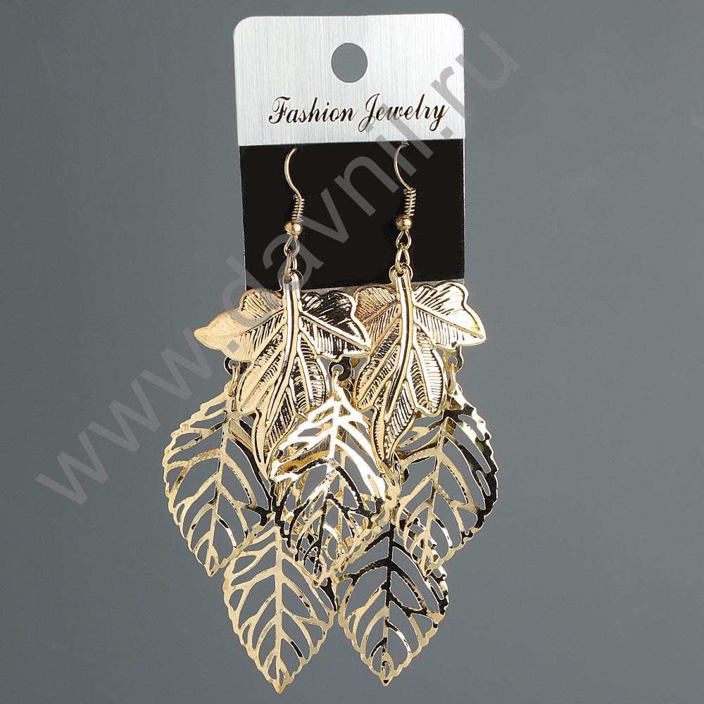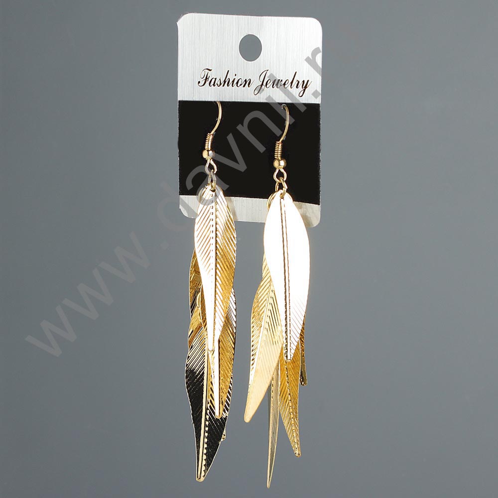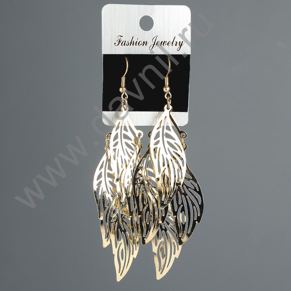 Серьги "Листья" под золото 9,5 см