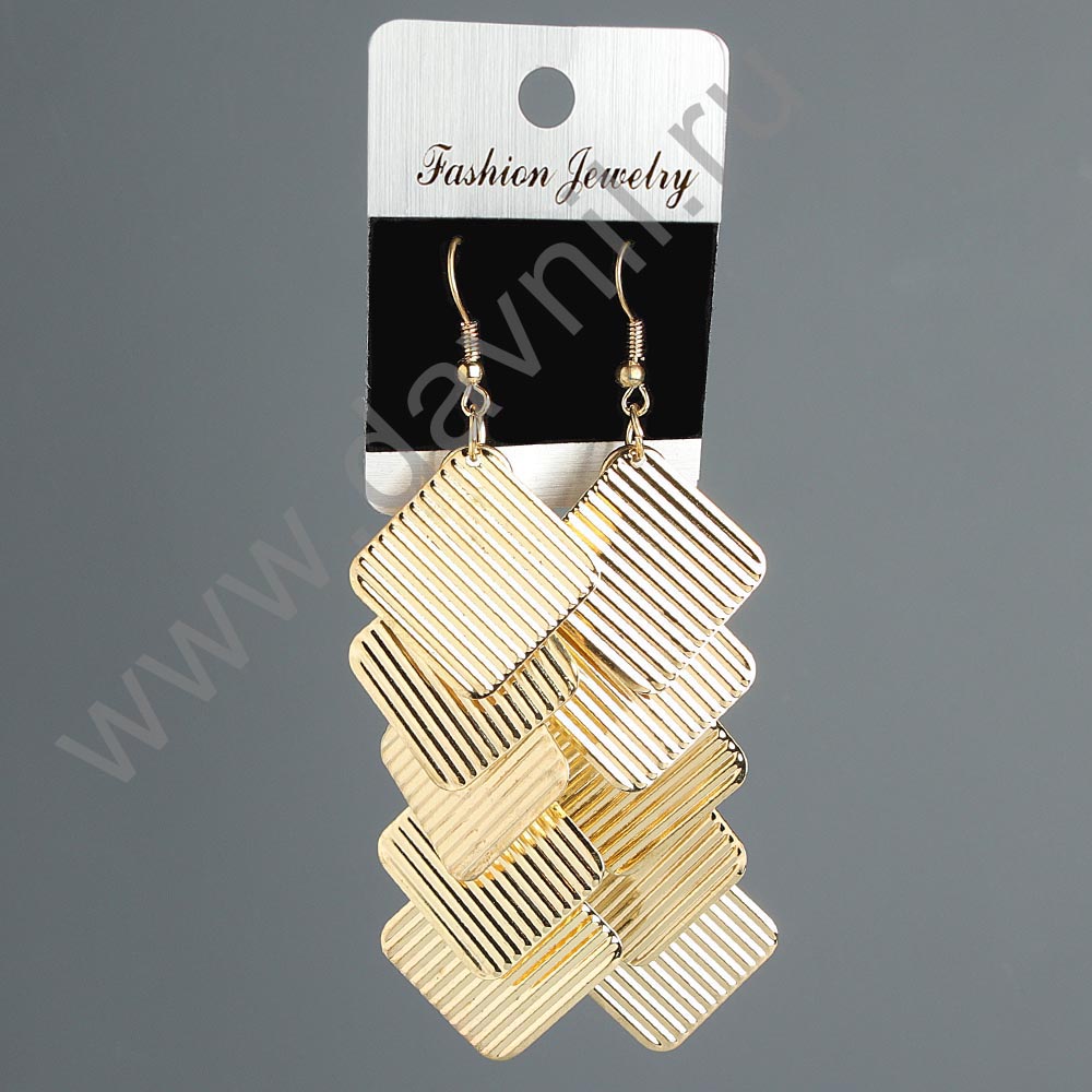 Серьги "Квадраты" под золото 9 см