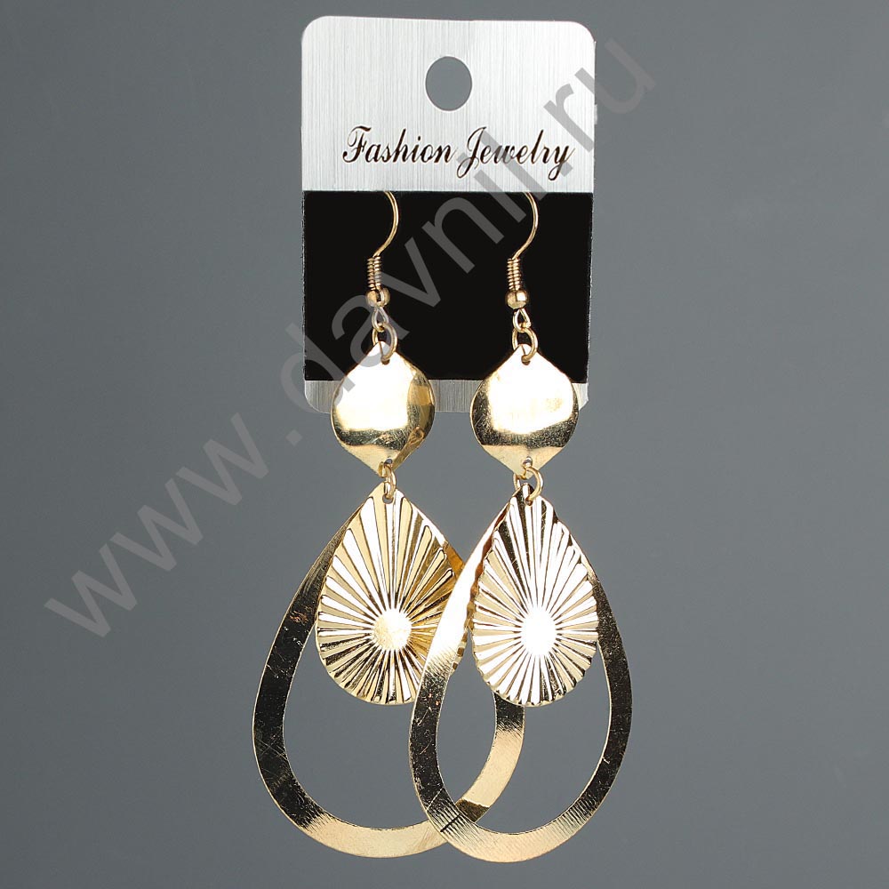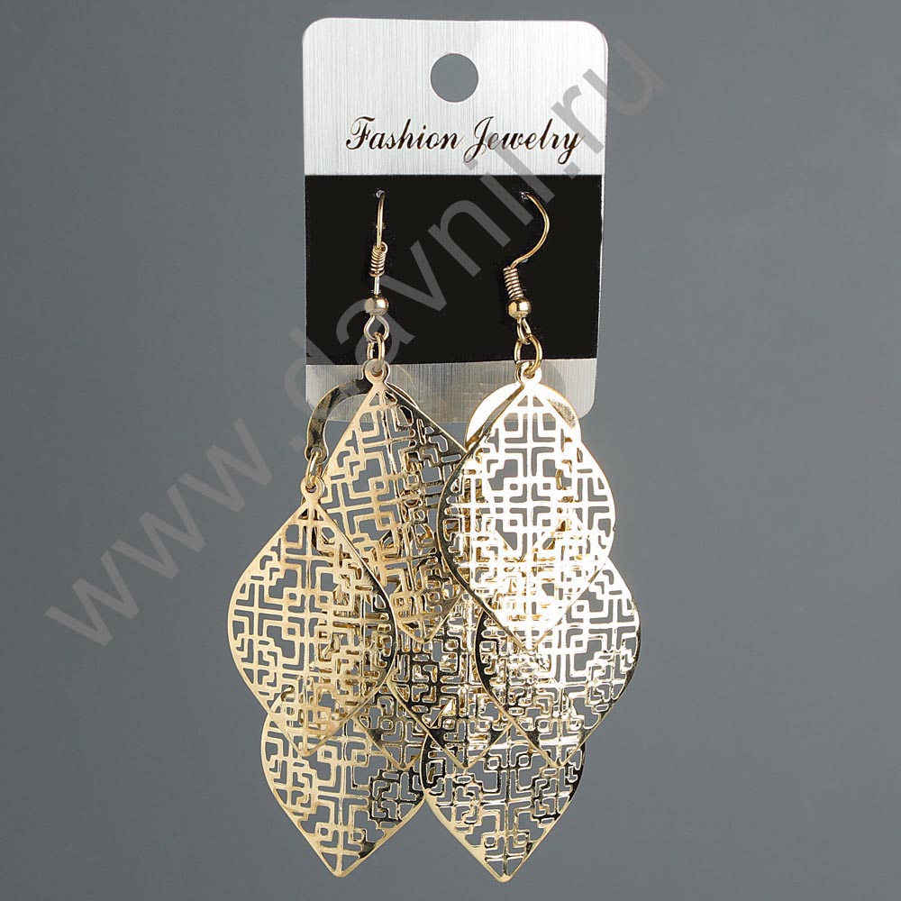 Серьги "Капельки с ромбиками" под золото 9 см