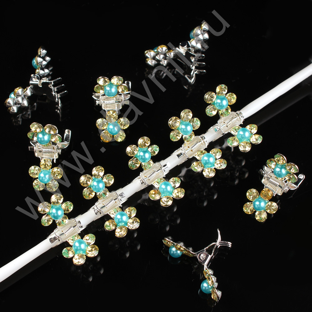 Краб для волос со стразами "Ромашка" 22*11 мм 12 шт с бирюзовой бусиной