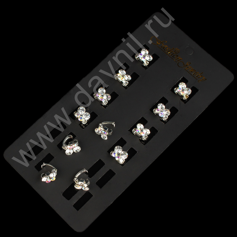 Зажим для волос со стразами "Бабочка" 10*8 мм 12 шт серебряный