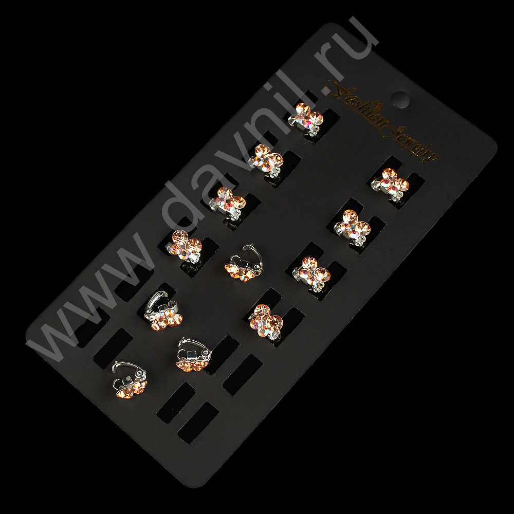 Зажим для волос со стразами "Бабочка" 10*8 мм 12 шт персиковый