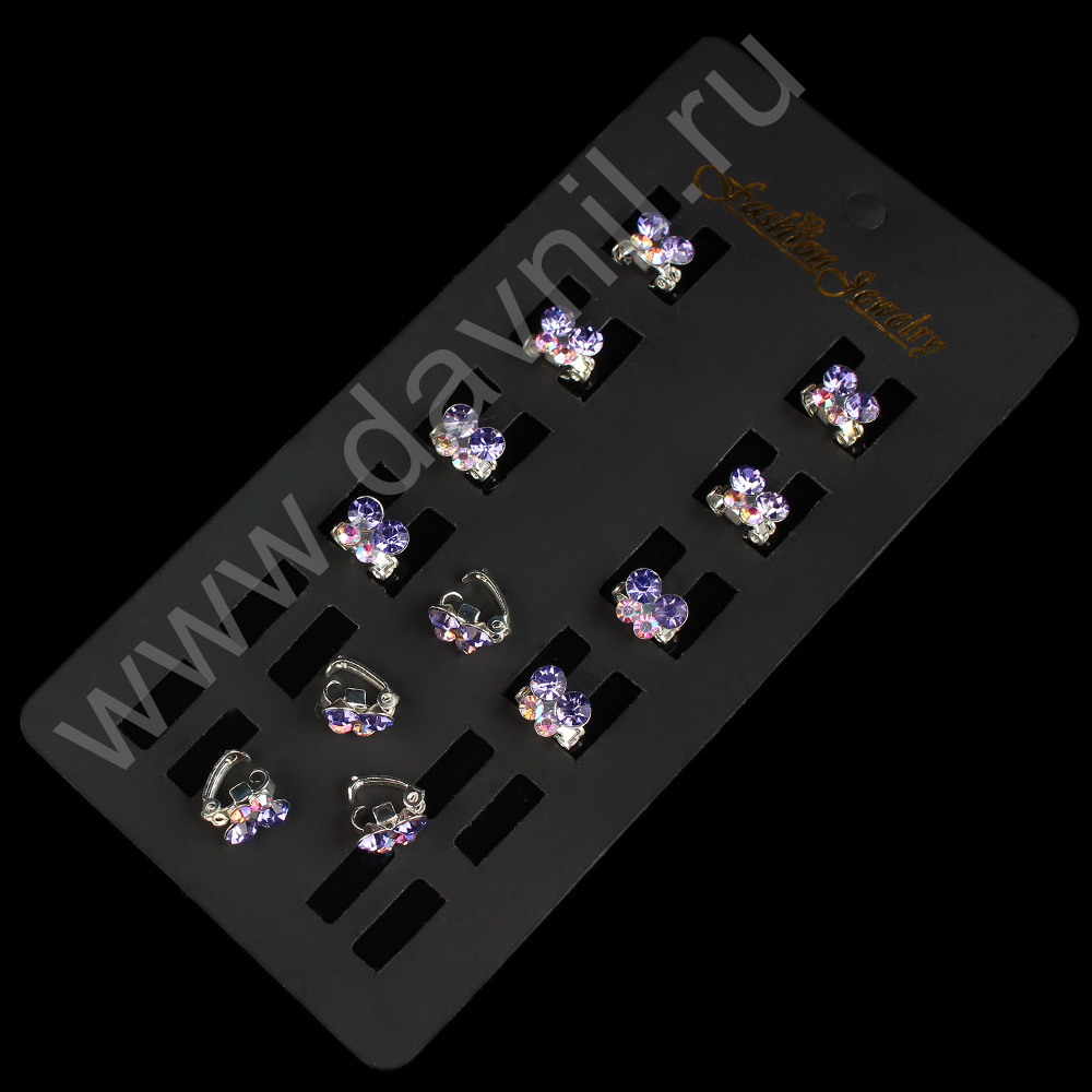 Зажим для волос со стразами "Бабочка" 10*8 мм 12 шт сиреневый