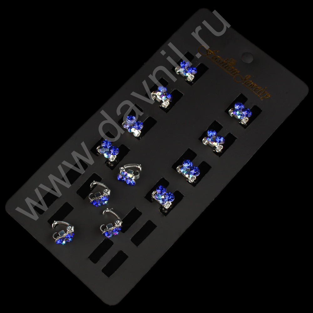 Зажим для волос со стразами "Бабочка" 10*8 мм 12 шт синий