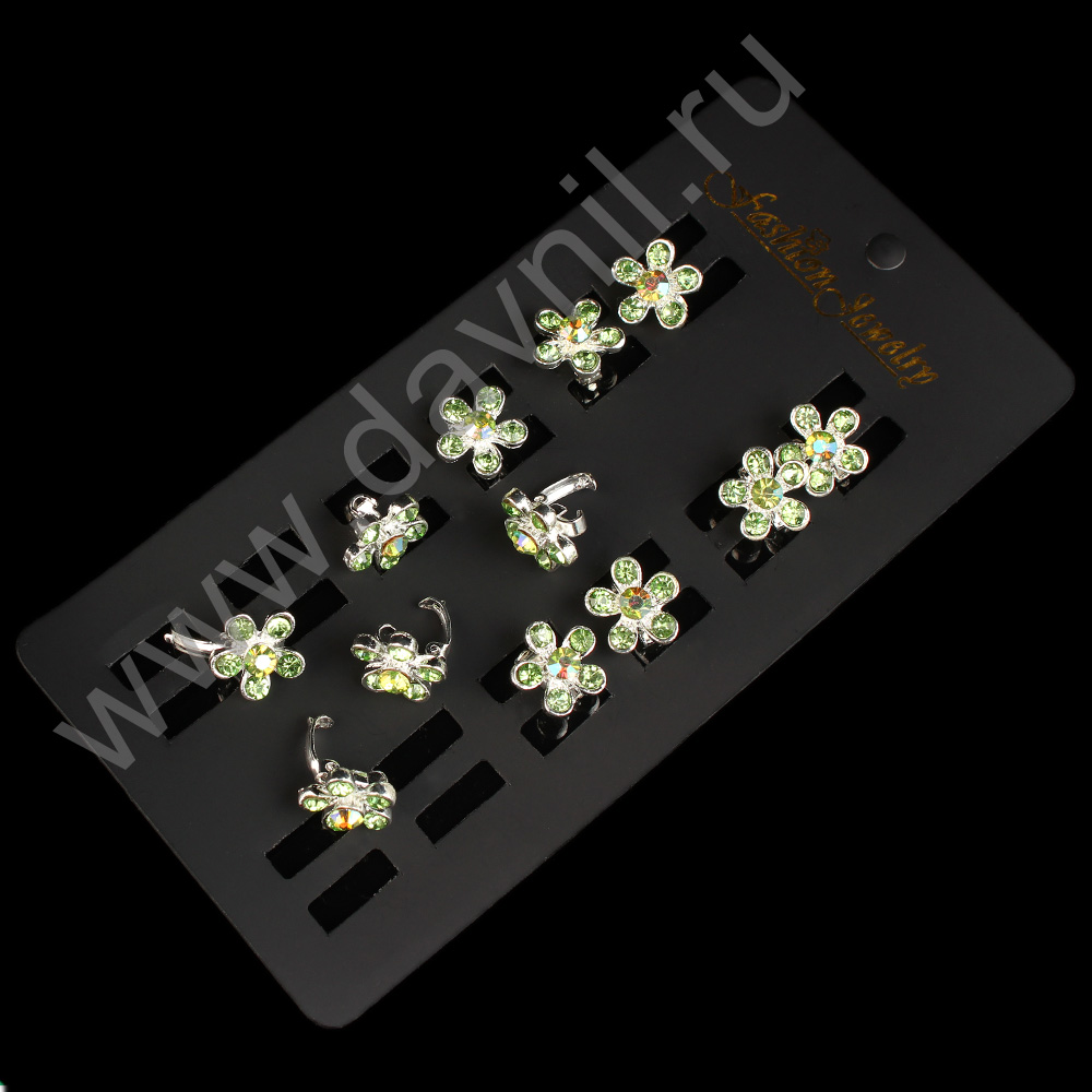 Зажим для волос со стразами "Цветок" d=14 мм 12 шт зелёный