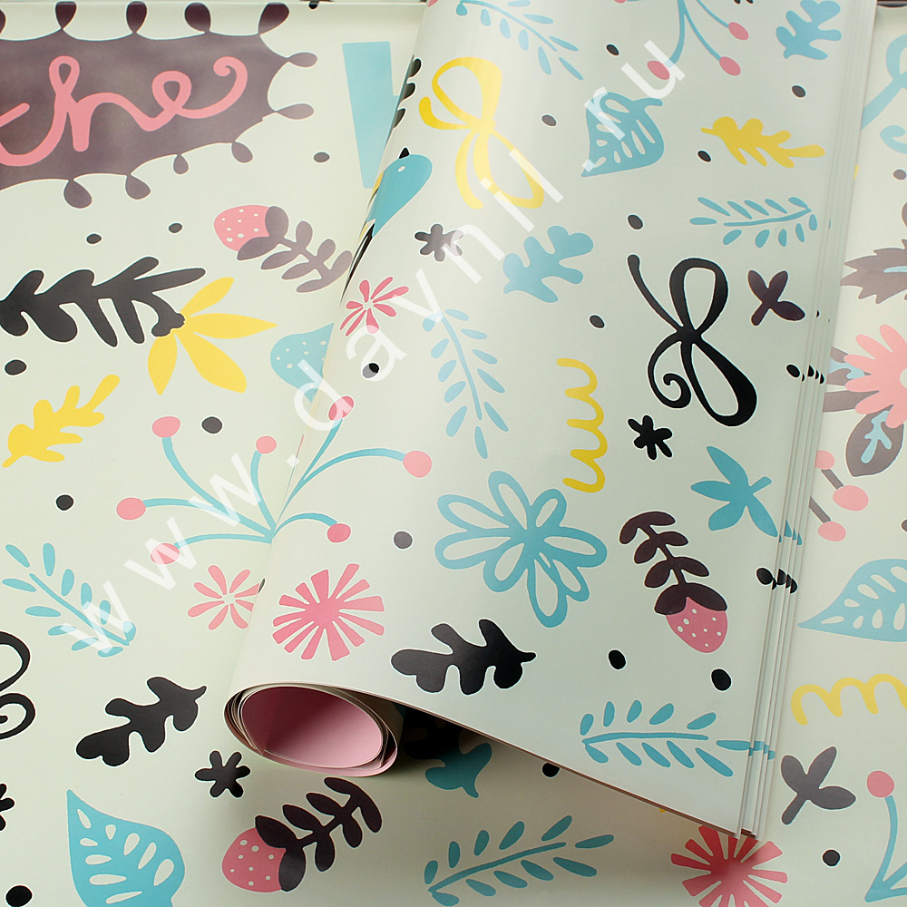 Бумага декорированная 70*50 см 10 шт. зелёная/цветная 5
