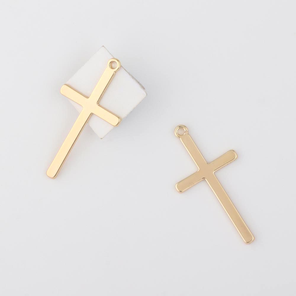 Подвеска родиевое покрытие крестик 13*24 мм золото 2 шт Korea