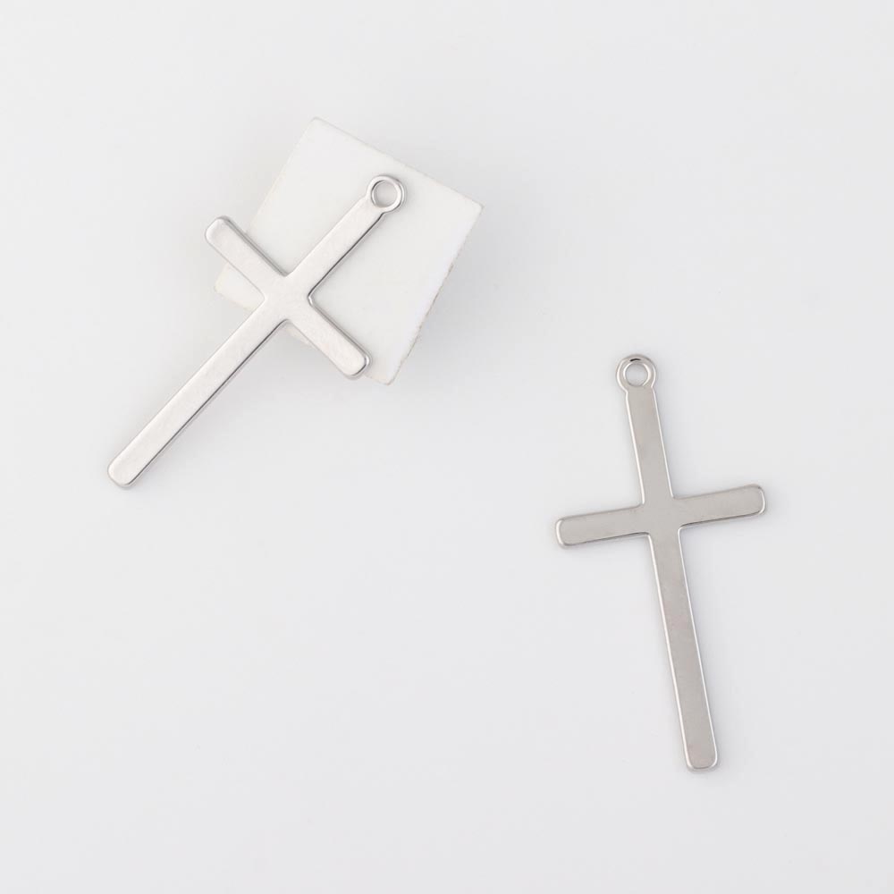 Подвеска родиевое покрытие крестик 13*24 мм серебро 2 шт Korea