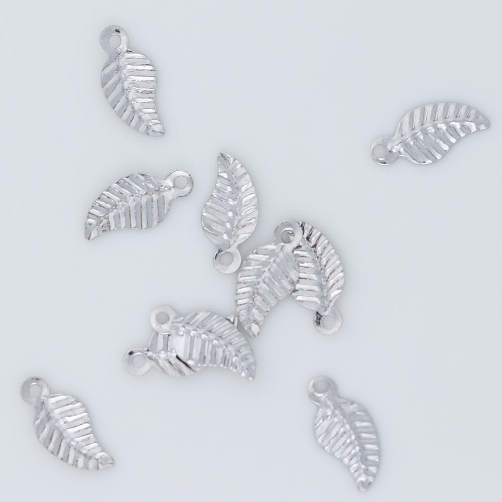 Подвеска родиевое покрытие ажурный листочек 8*4 мм 10 шт серебро