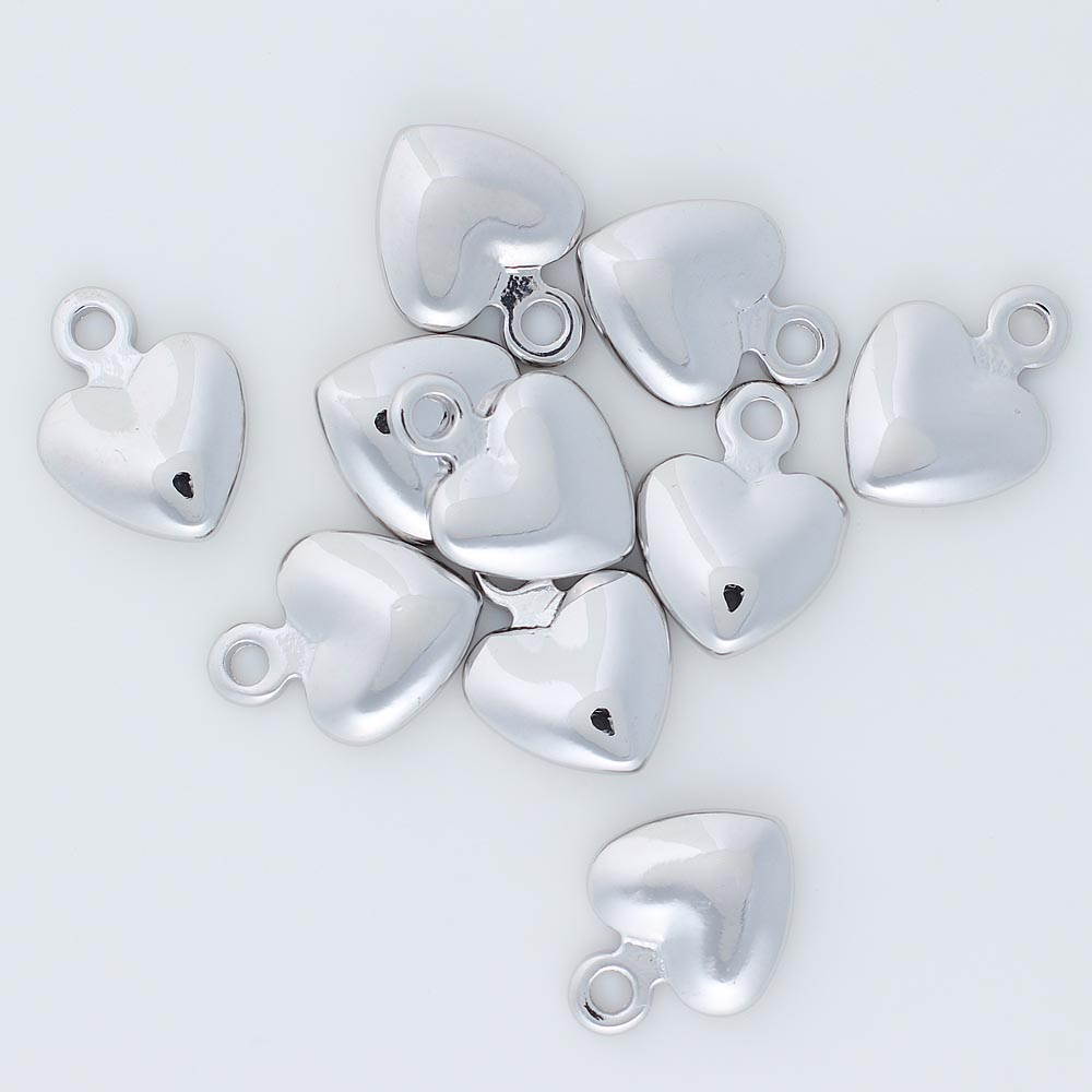 Подвеска родиевое покрытие сердечко 9*6,6 мм 100шт серебро Кorea