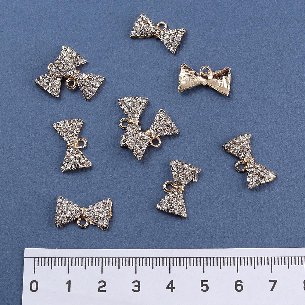 Подвеска металлическая для украшений бант с серебряными стразами16*9 шт