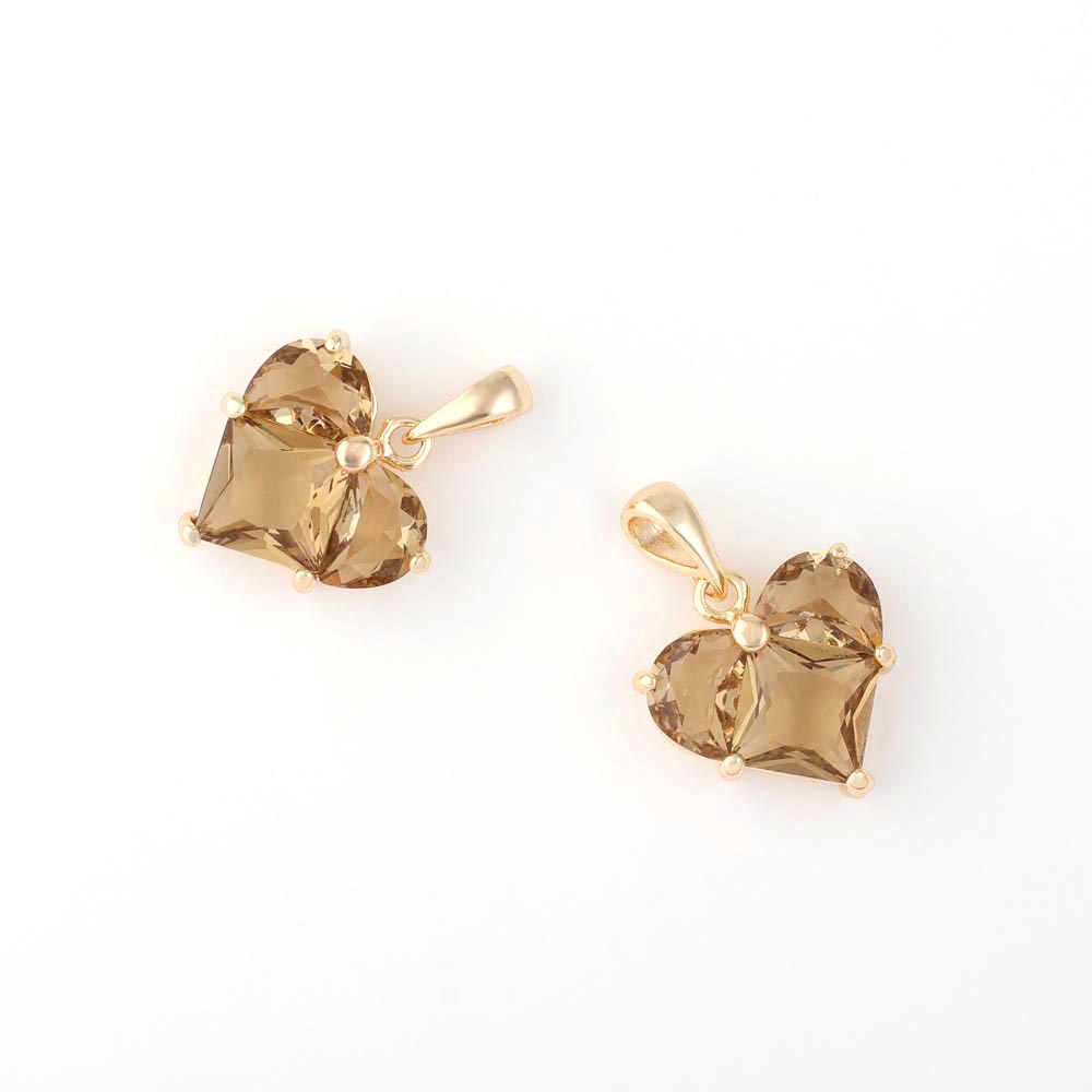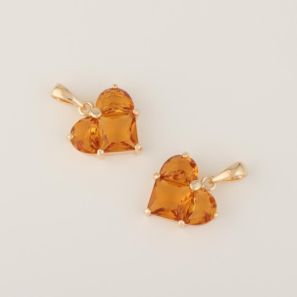Подвеска родиевое покрытие золото сердечко жёлтое14 мм 2 шт