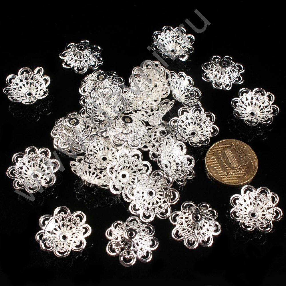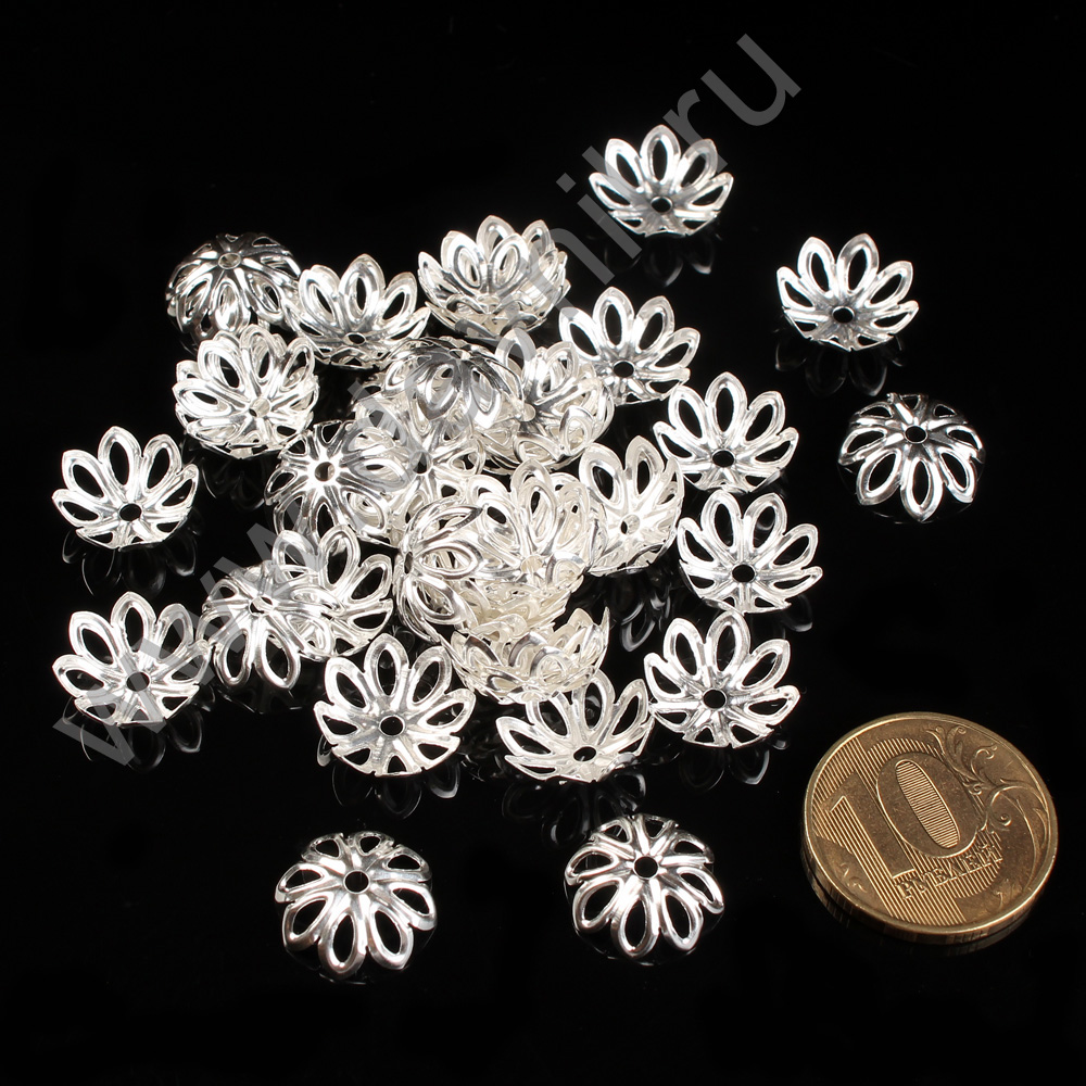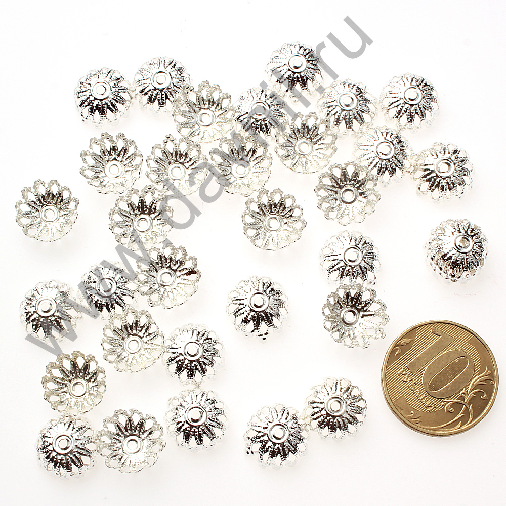 Шапочки для бусин с родиевым покрытием 0,6 мм 100 шт серебро