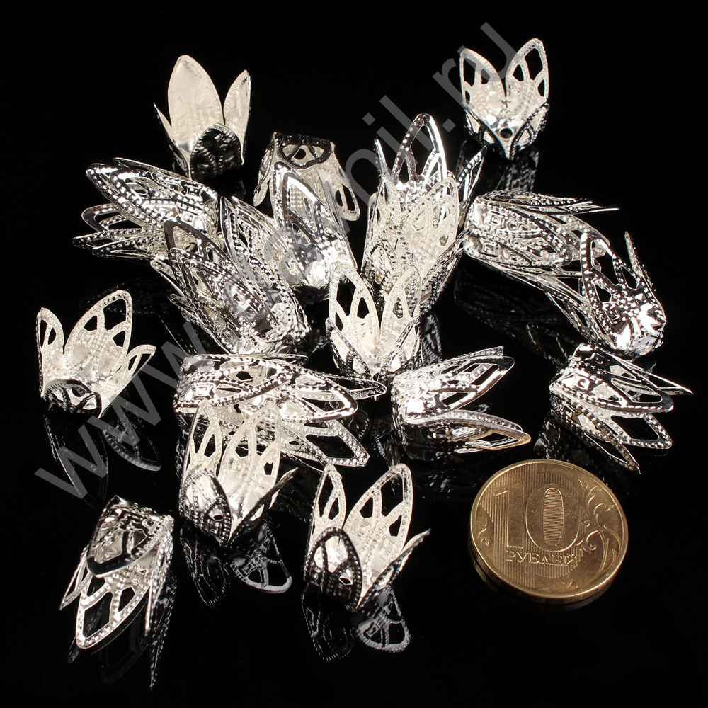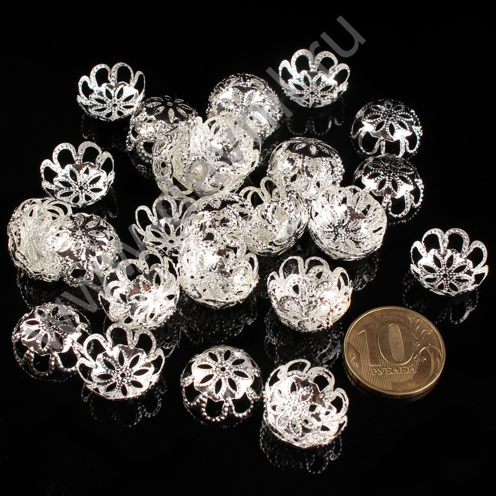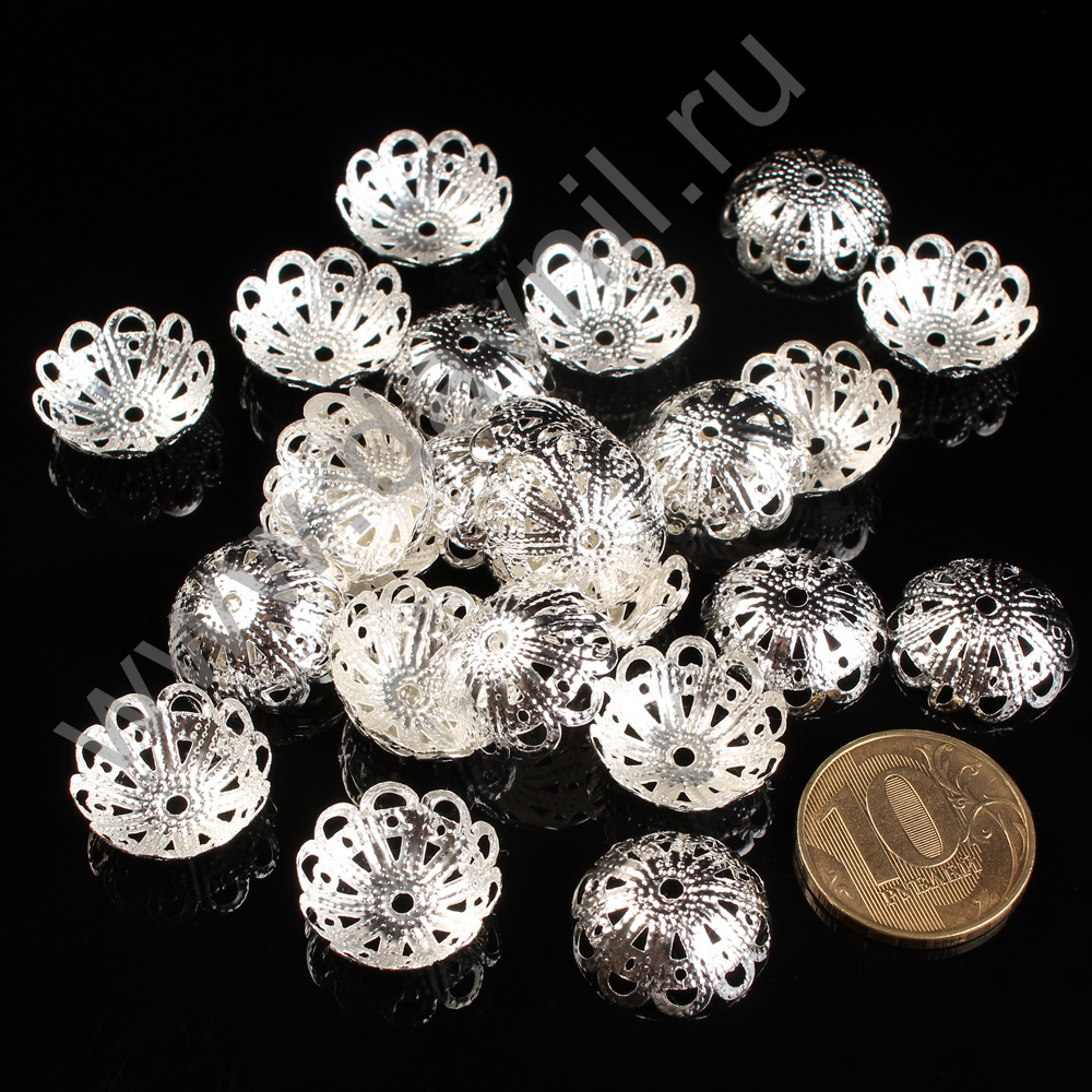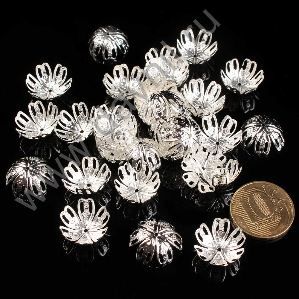 Шапочки для бусин с родиевым покрытием 0,6 мм 100 шт серебро