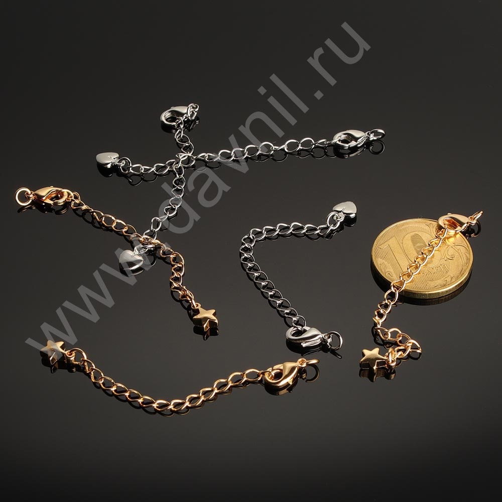 Карабин с цепочкой и сердечком родиевое покрытие 12 мм 50 шт золото