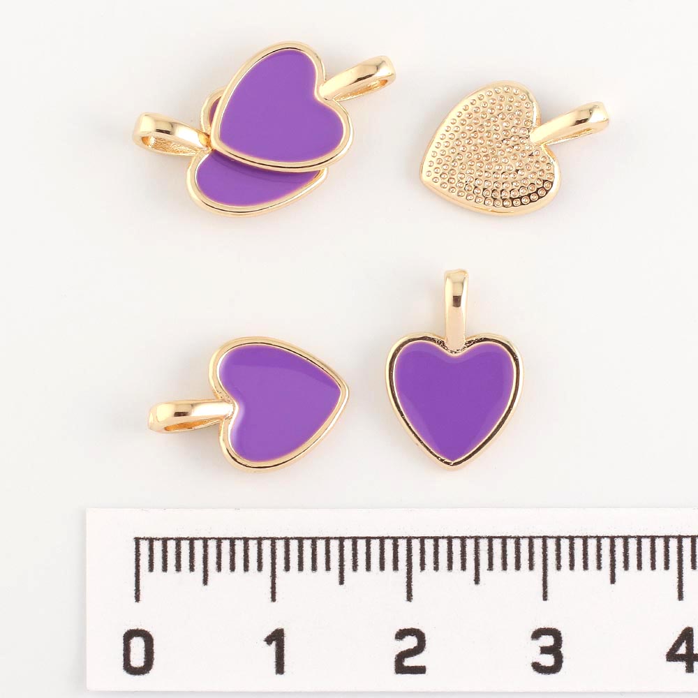 Подвеска родиевое покрытие сердечко 10 мм сиреневые в золоте 5 шт Korea