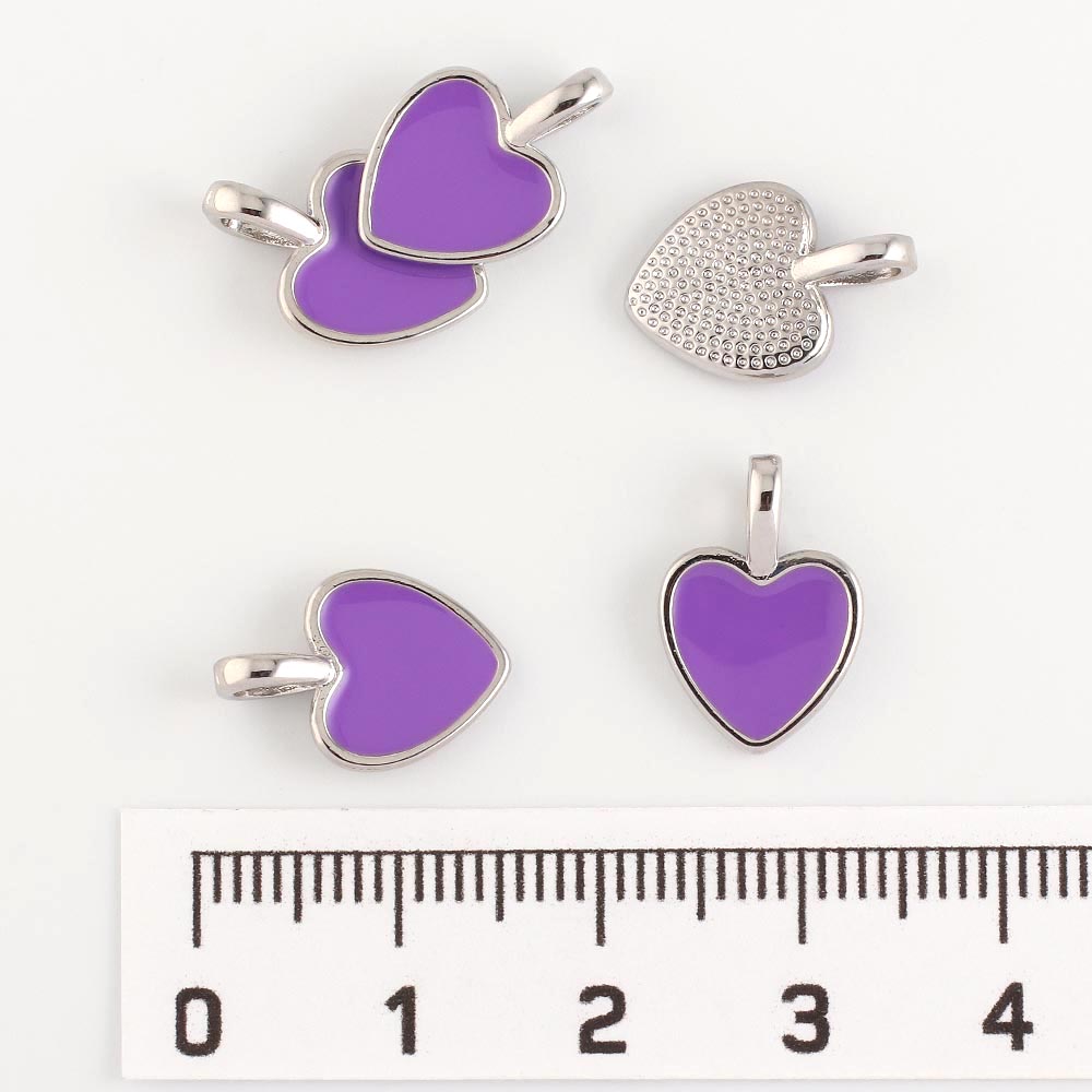 Подвеска родиевое покрытие сердечко 10 мм сиреневые в серебре 5 шт Korea
