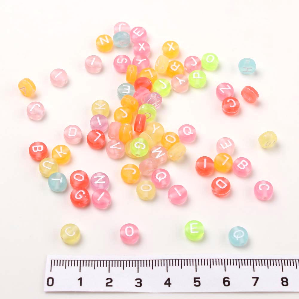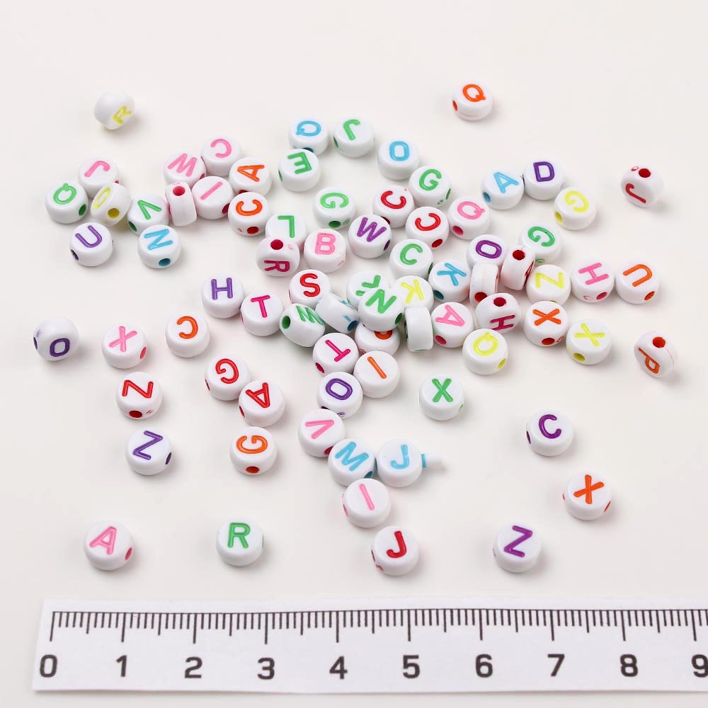 Бусины белый круг с цветными буквами 6 мм 50 гр