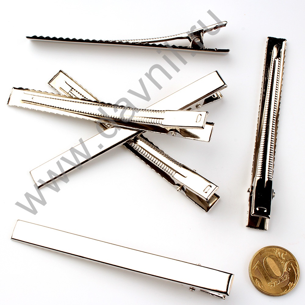 Зажим "Крокодильчик" 5 см 1000 шт серебро обтянутый лентой