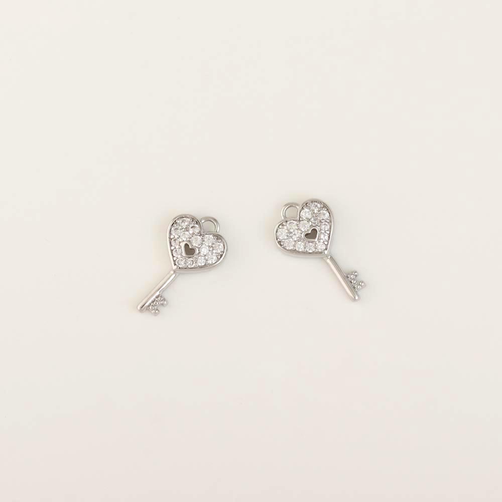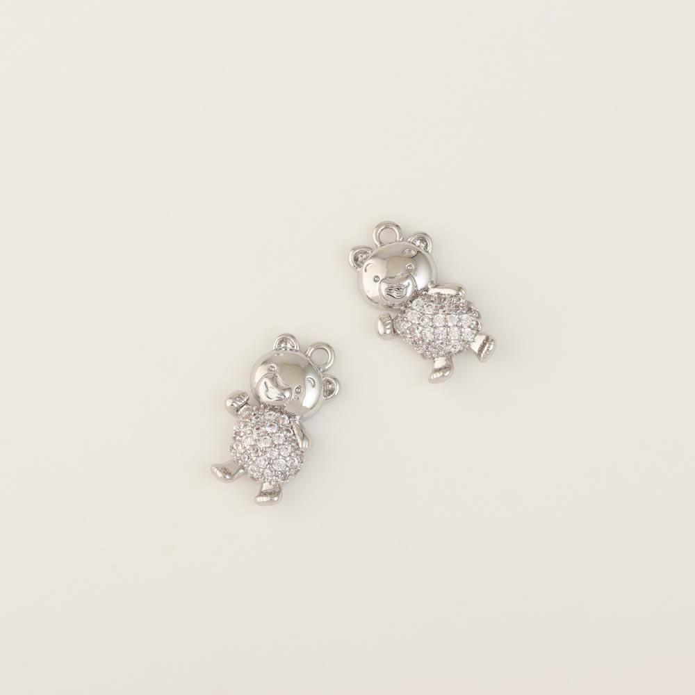 Подвеска родиевое покрытие мишка со стразами 10*4,3 мм серебро 2 шт Korea