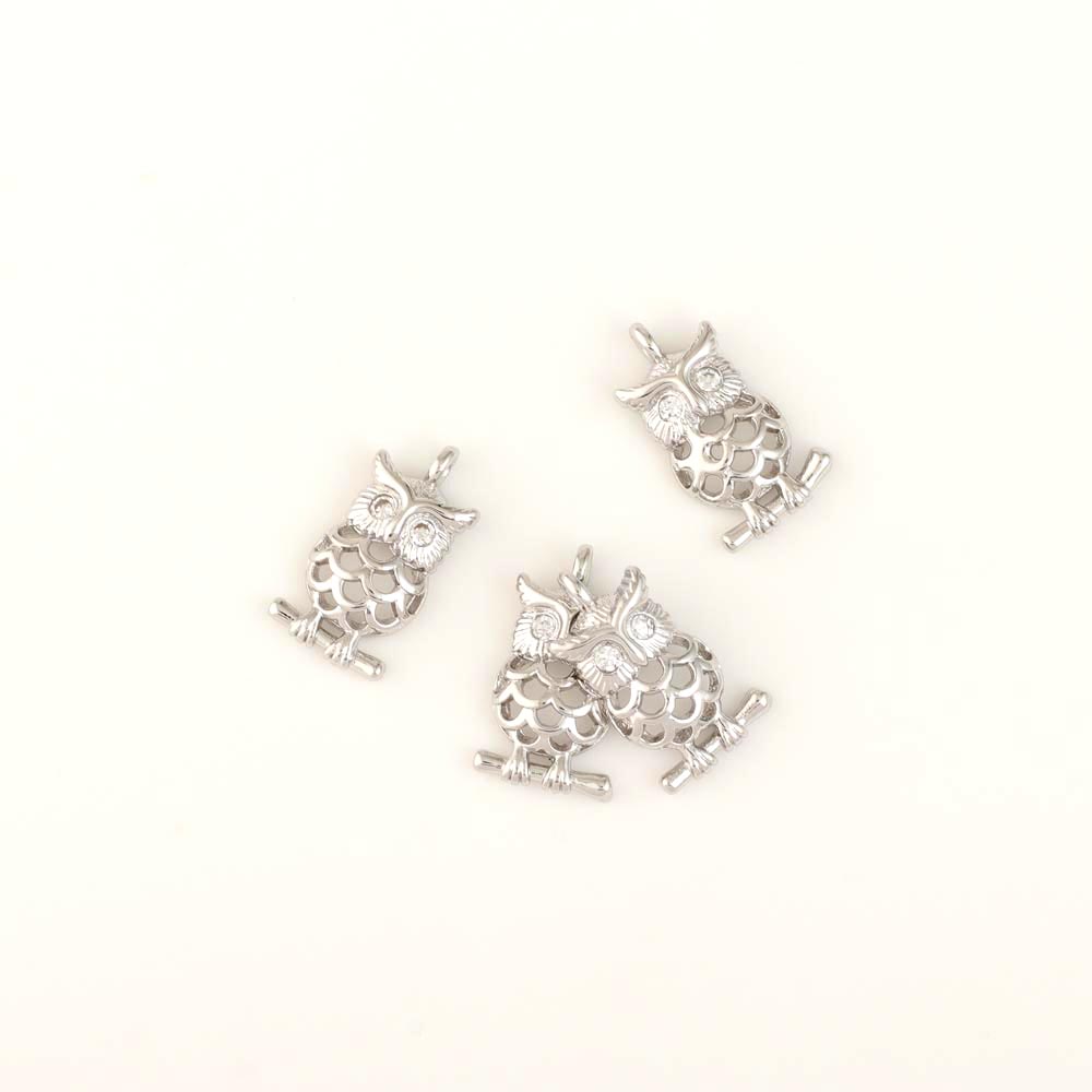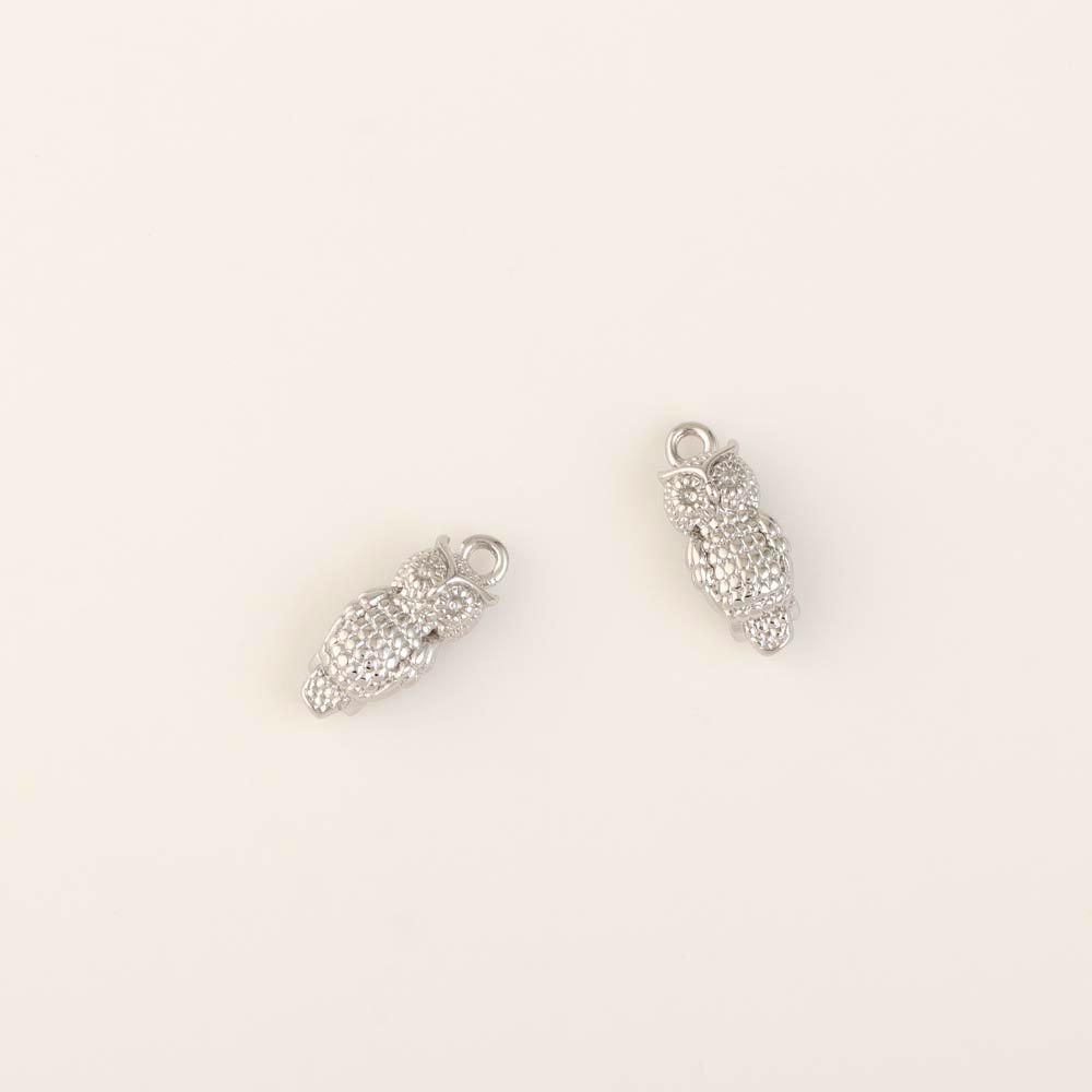 Подвеска родиевое покрытие сова 6*14,2 мм серебро 2 шт Korea
