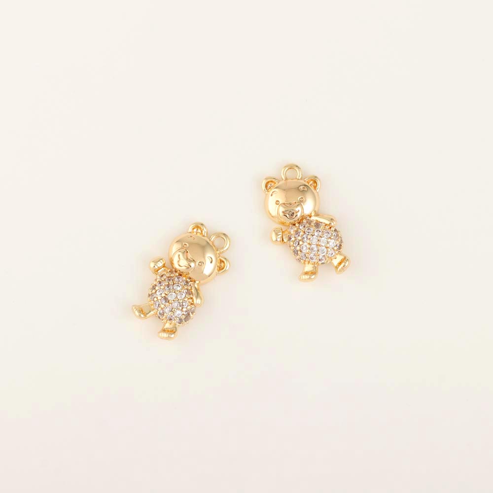 Подвеска родиевое покрытие мишка со стразами 10*15 мм золото 2 шт Korea