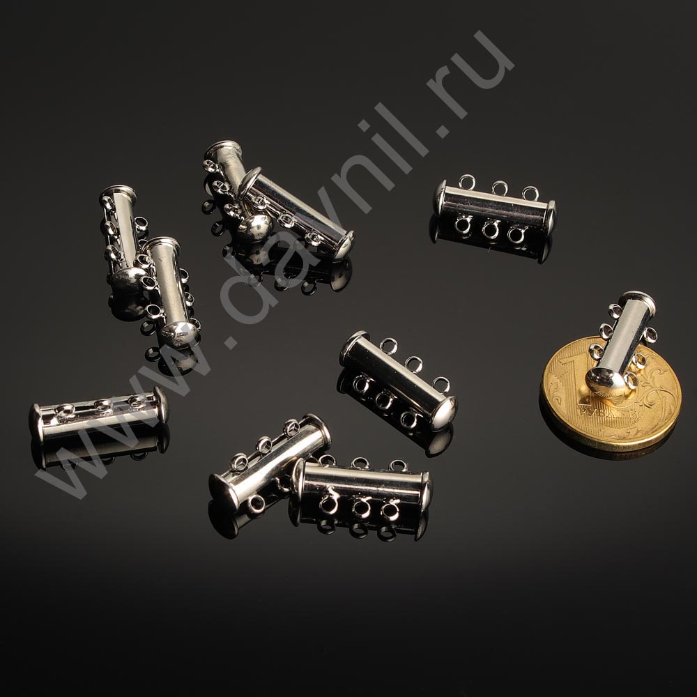 Замок для браслета с тремя петельками 2 см 10 шт серебро