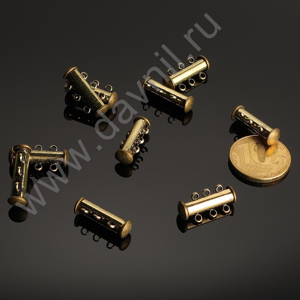 Замок для браслета с тремя петельками 2 см 10 шт бронза