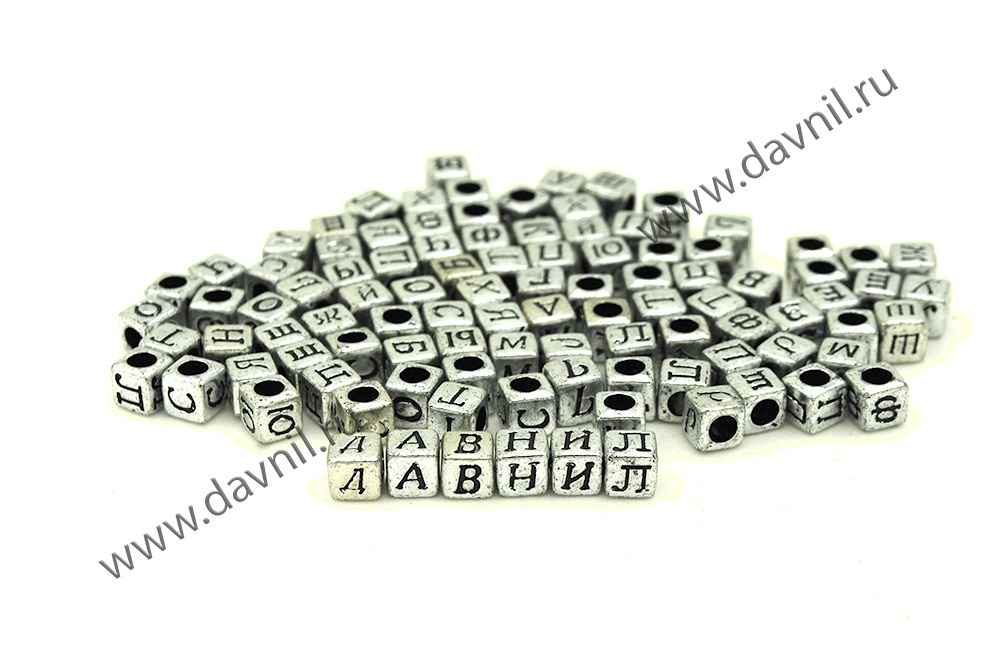 Бусины буквы квадратные серебряные 7 мм 100 шт.
