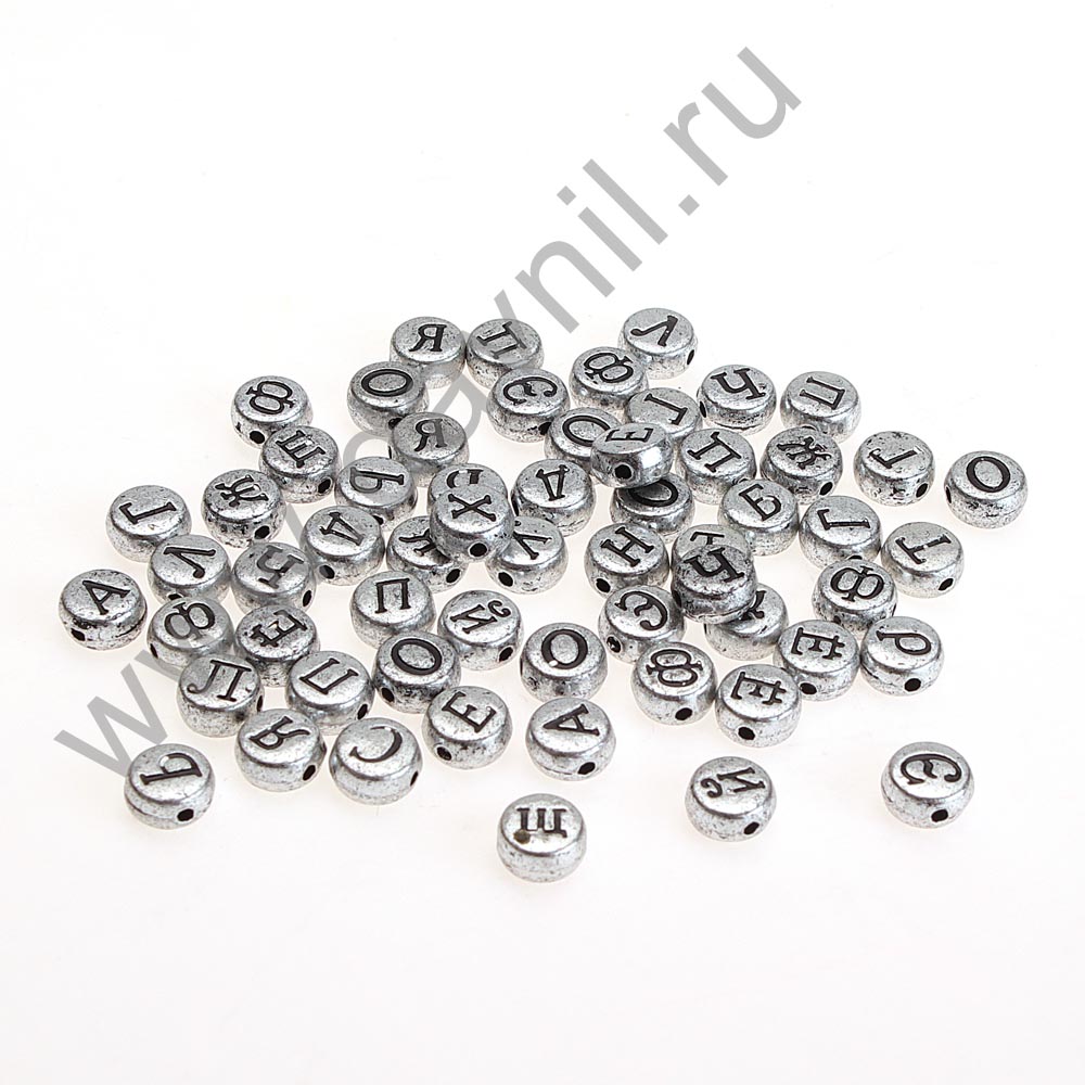 Бусины буквы круглые серебряные 8 мм 100 шт.