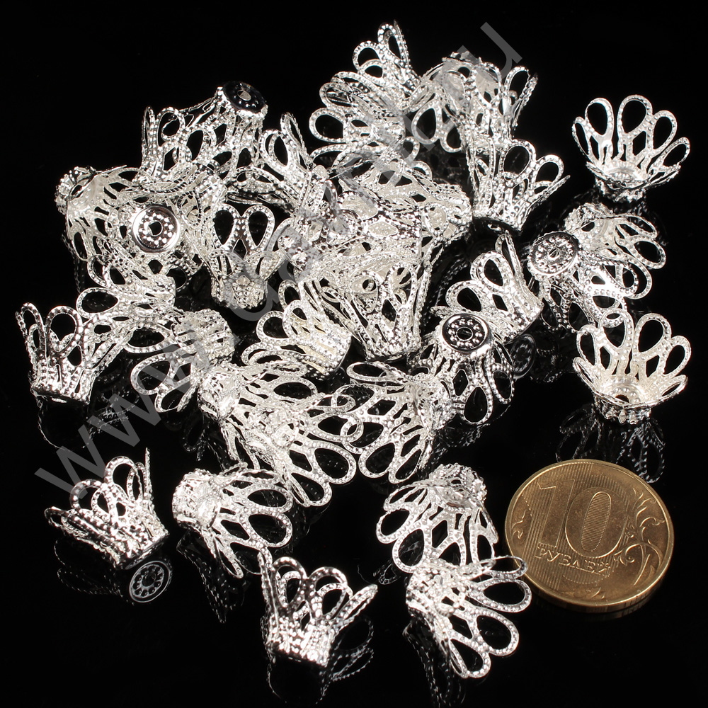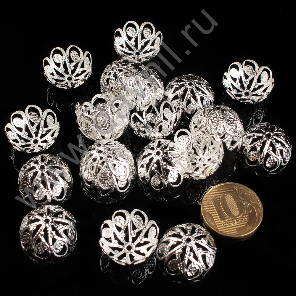 Шапочки для бусин ажурные 16 мм 15 г 50 шт серебро