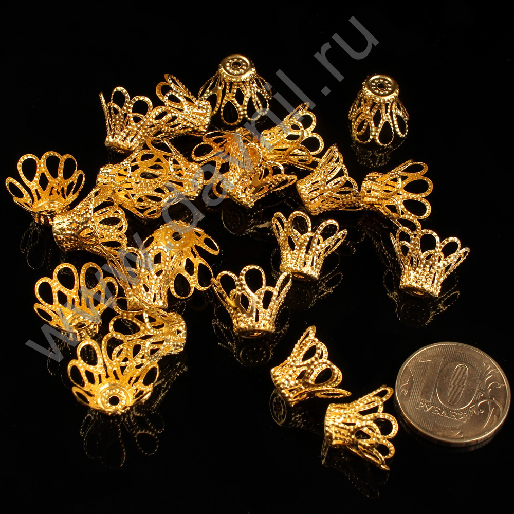 Шапочки для бусин ажурные 14 мм 1,8 кг 10 000 шт золото