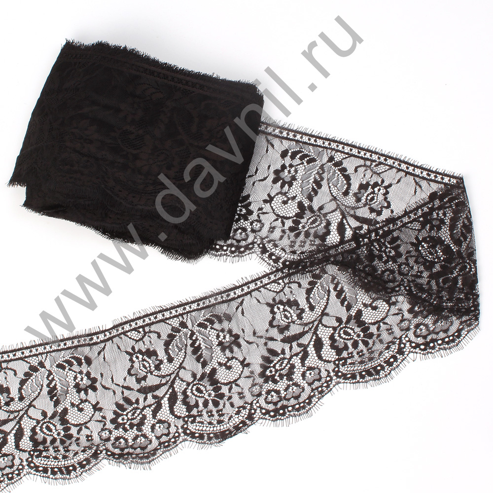 Кружево французское "Шантильи" 18,5 см*3 м чёрное 39