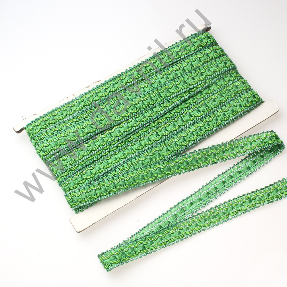 Тесьма отделочная матерчатая плетеная 1,2 см зеленая 20 ярдов