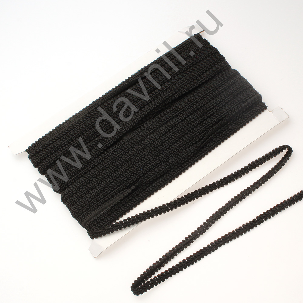 Тесьма отделочная матерчатая плетеная 0,8 см 20 ярдов черная