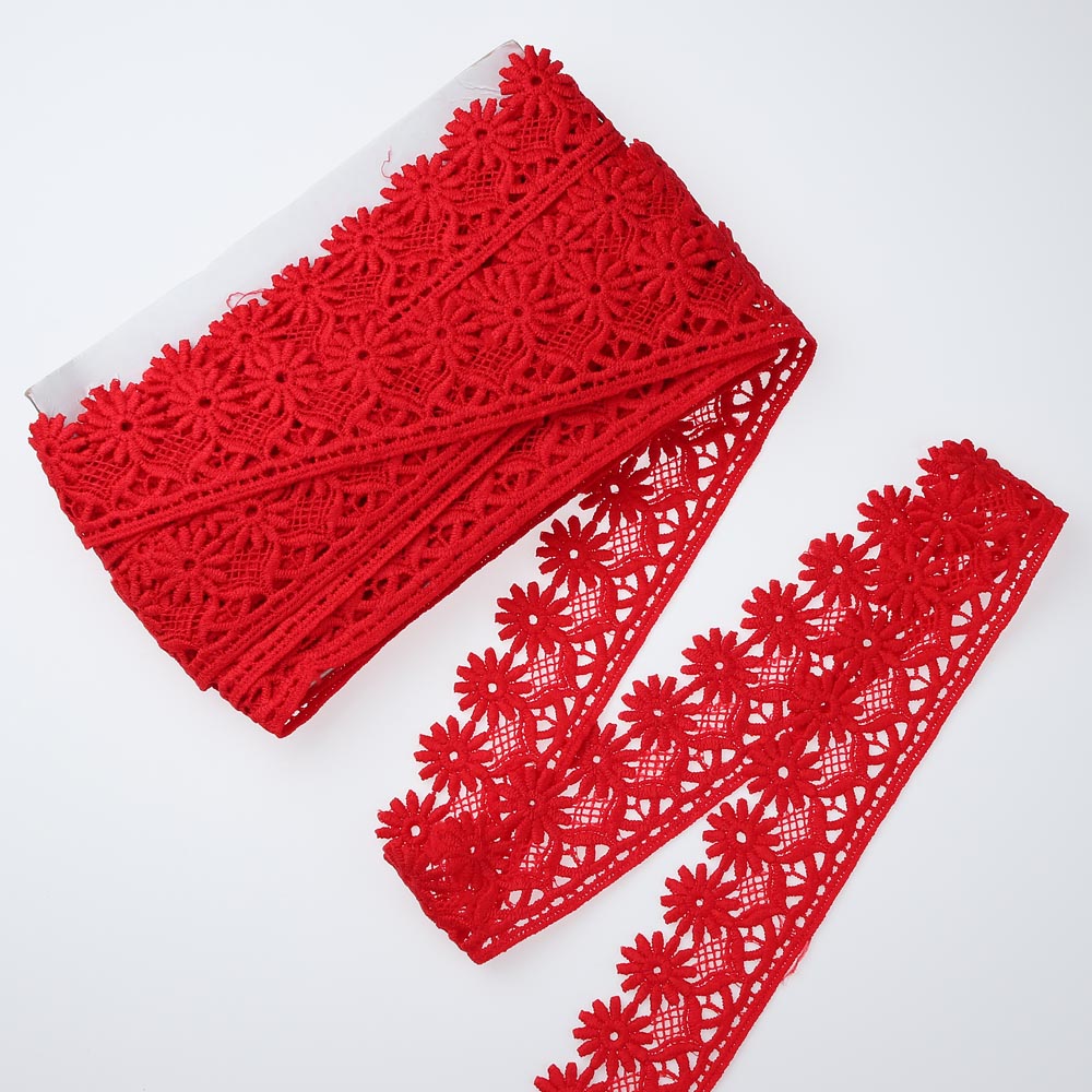 Кружево 4 см 100% хлопок 10 ярдов красное,