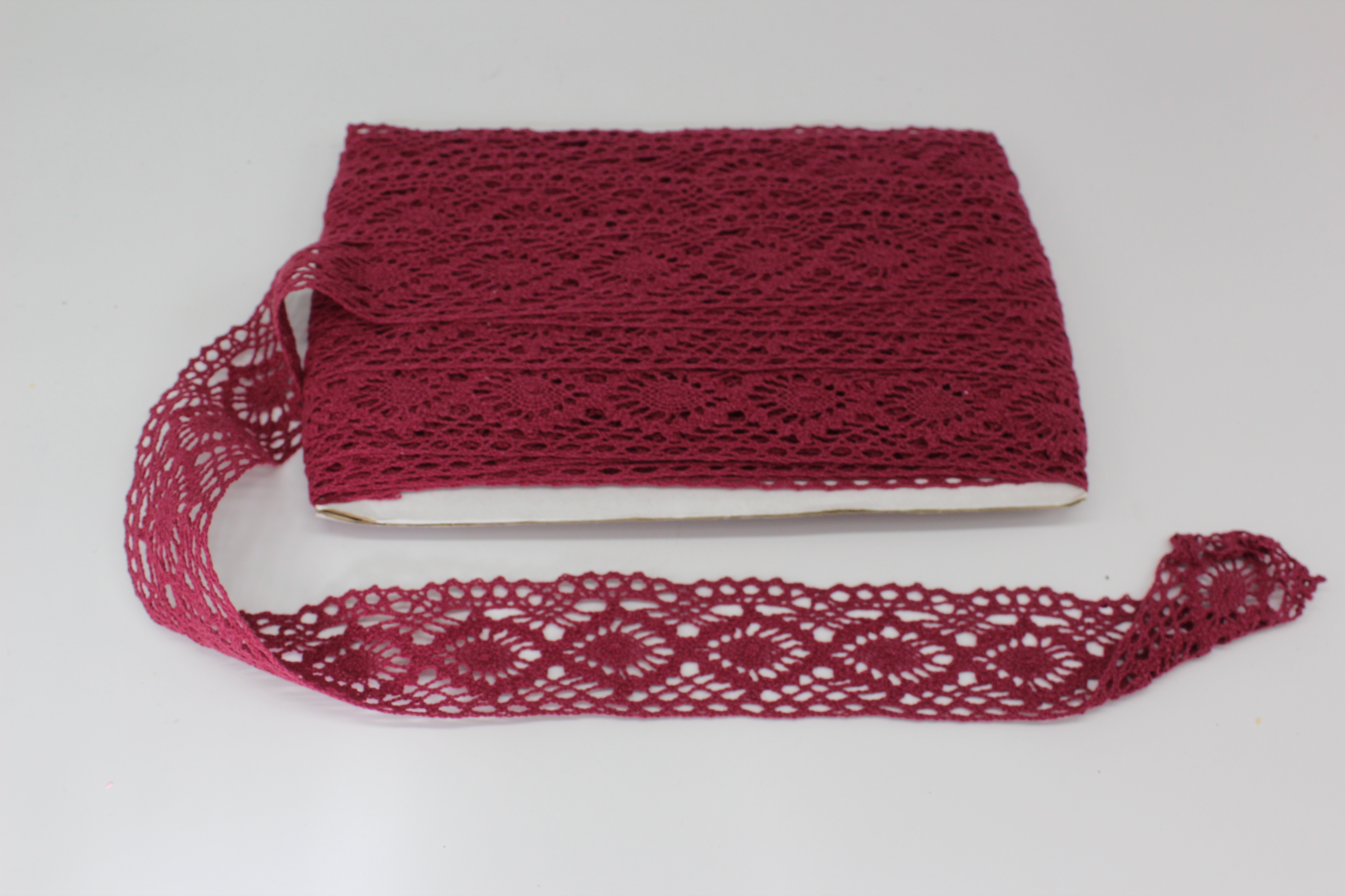 Кружево вязанное 100% лён 4,5 см 13,65 м бордовое,
