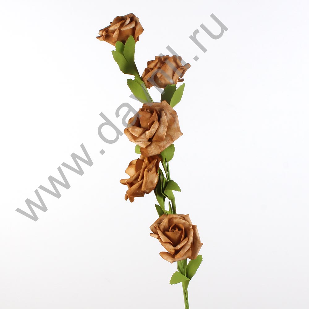 Цветок розы 60 см 5 головок из фоамирана коричневые