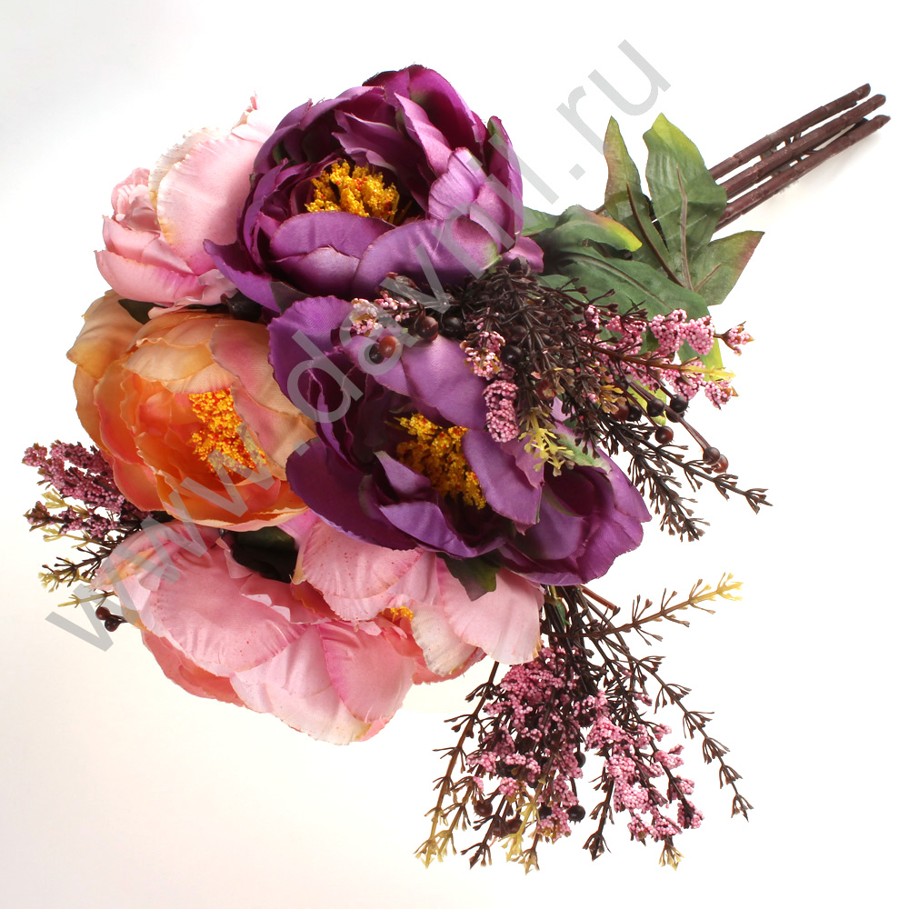 Букет пионов 7 веток 45 см 1 шт. розово-сиреневый
