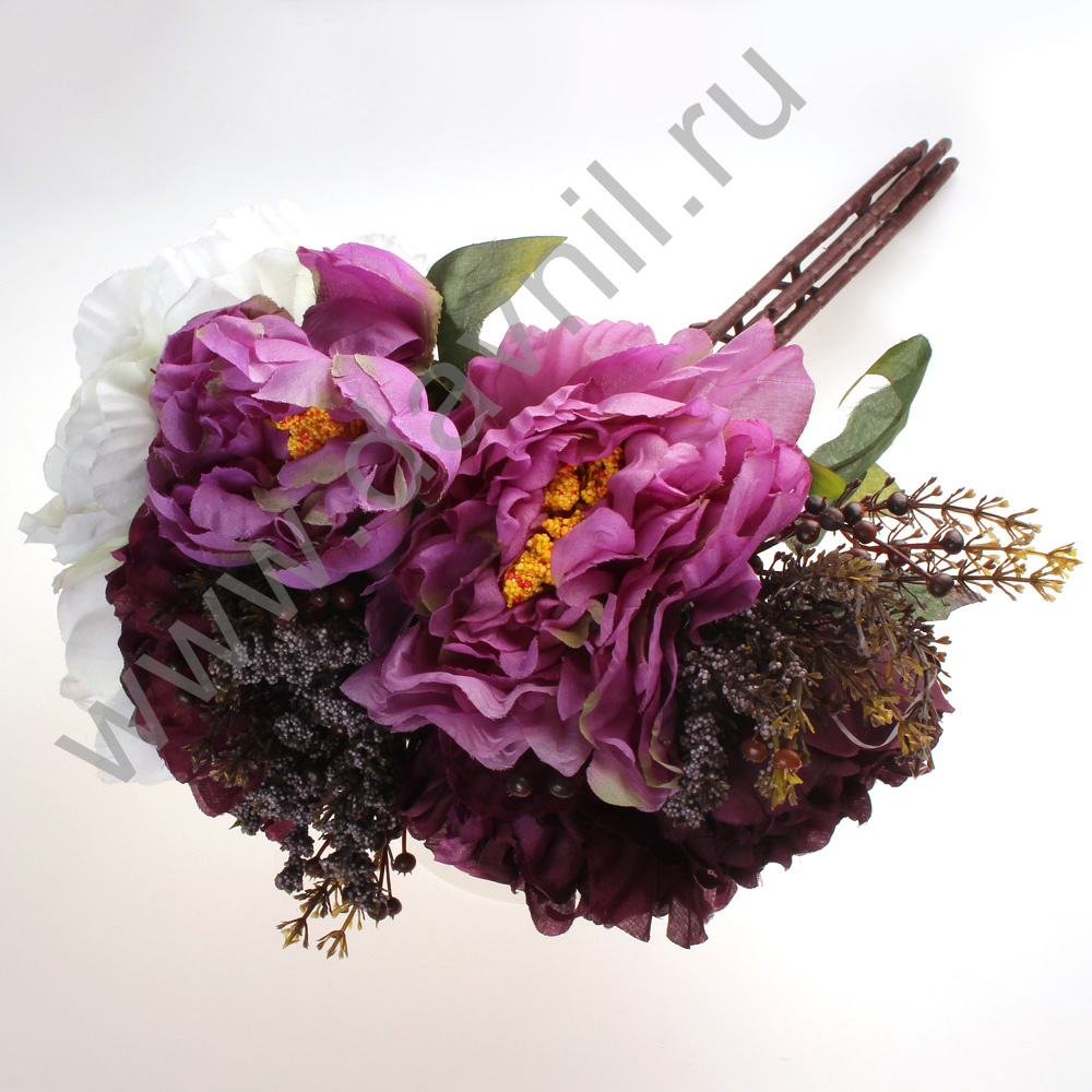 Букет раскрытых пионов 7 веток 45 см 1 шт. бело сиреневый