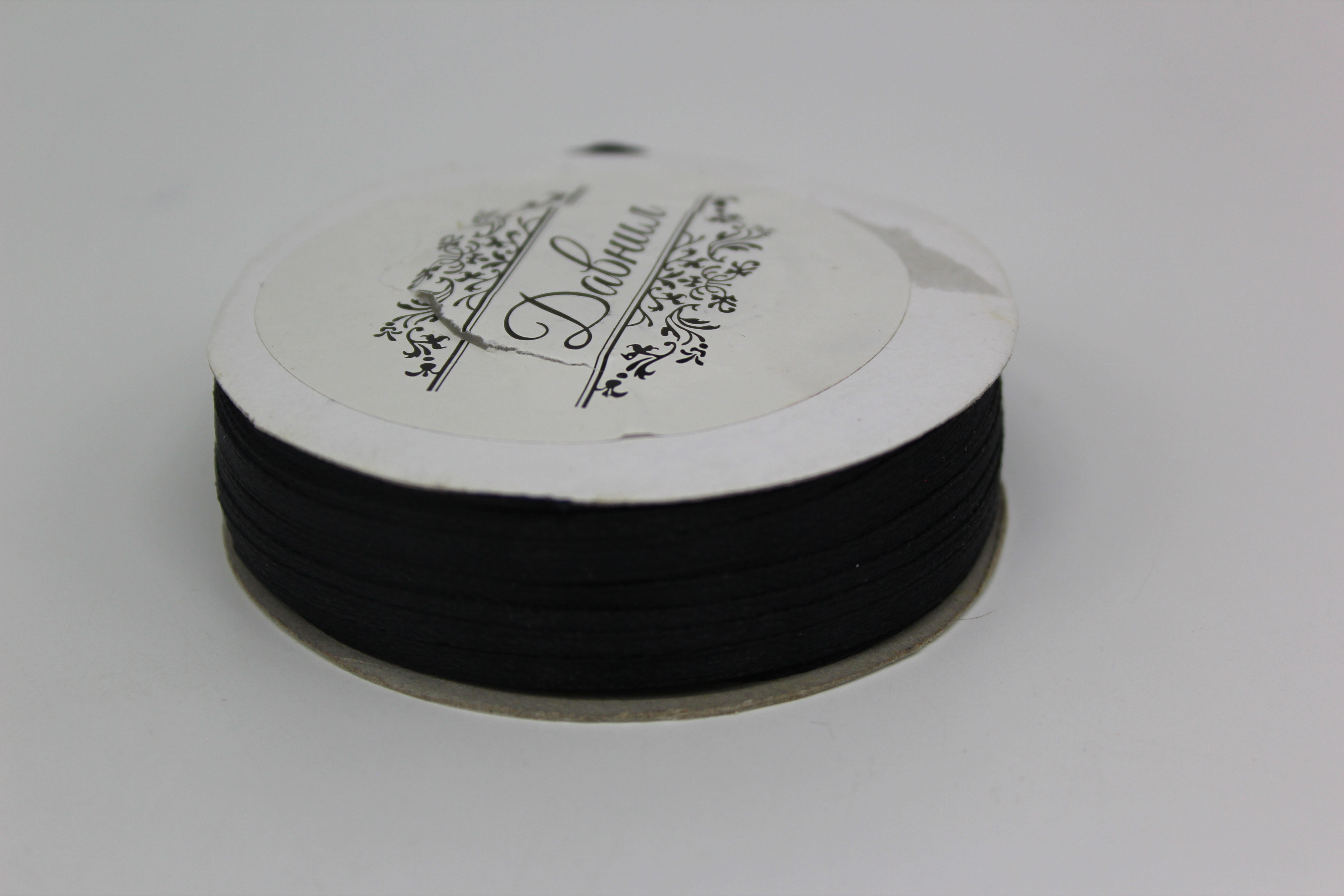 Лента атласная 0,3 см 90 ярдов чёрная 039