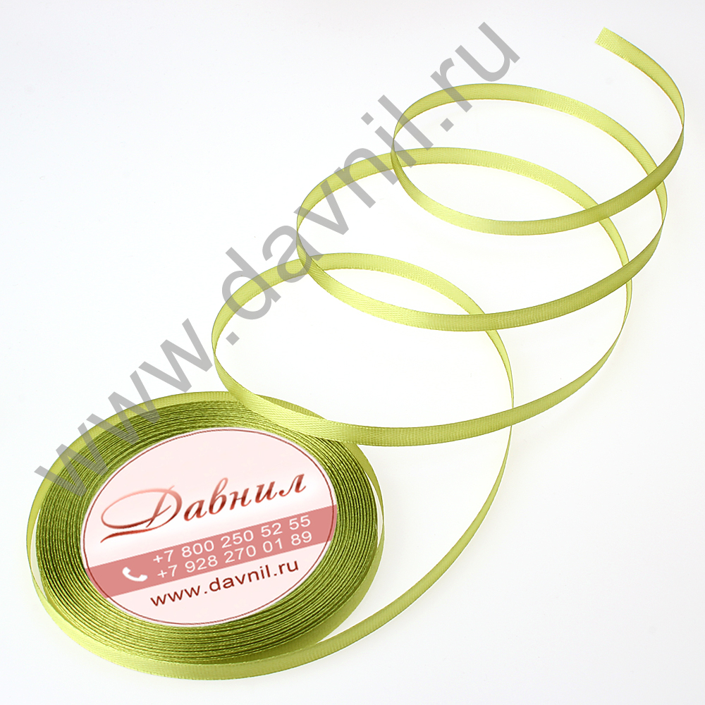 Лента атласная 0,6 см*25 ярдов оливковая 099