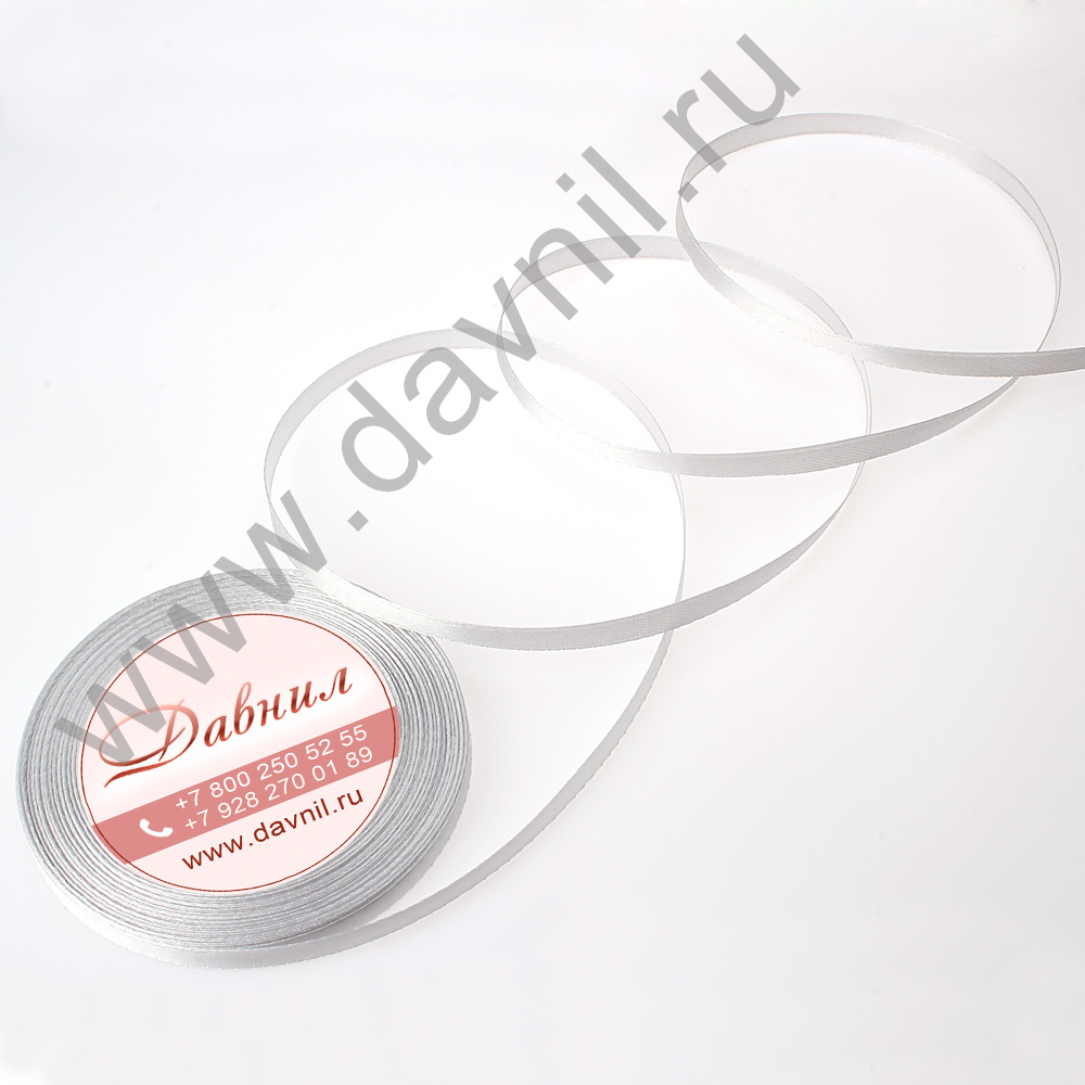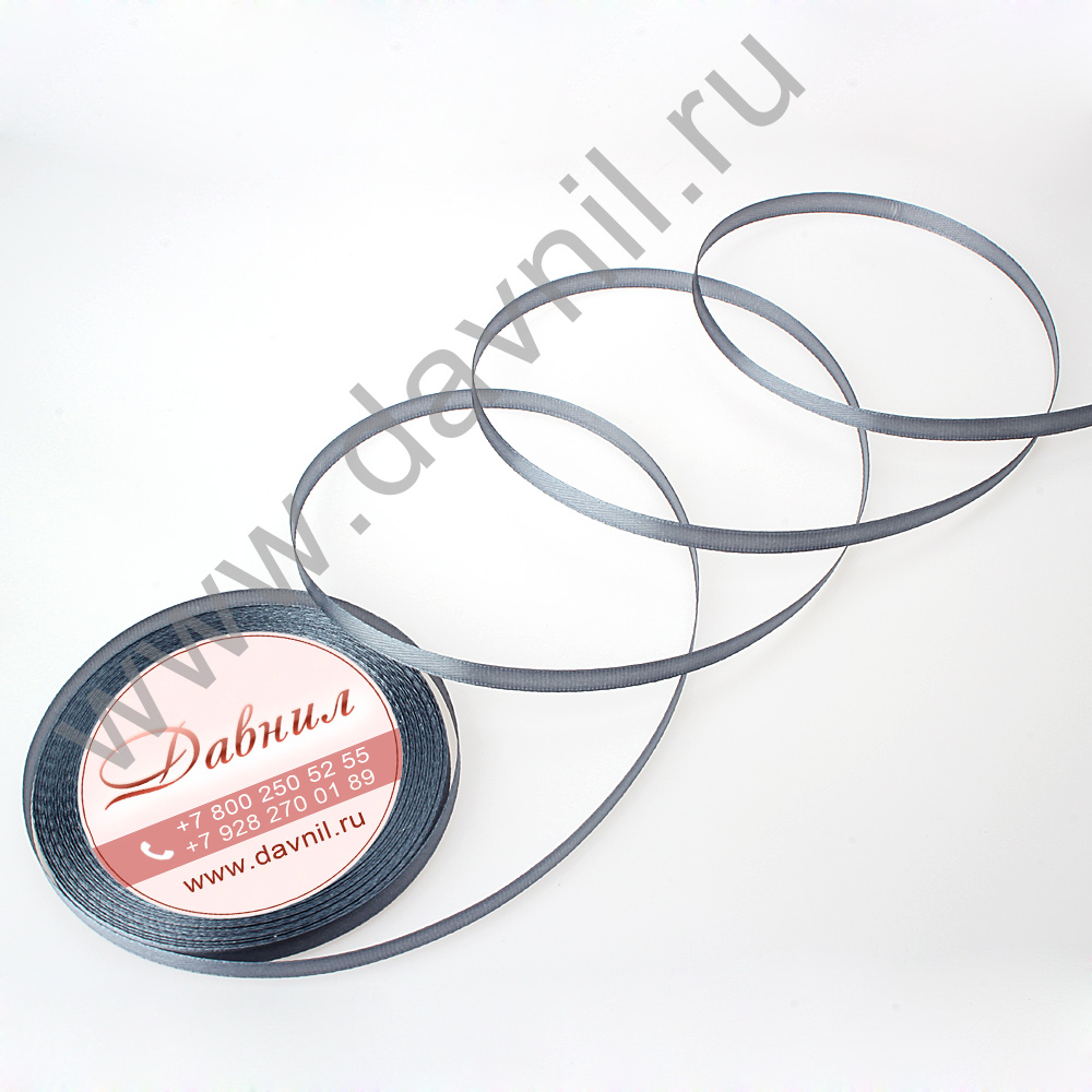 Лента атласная 0,6 см*25 ярдов серая 003