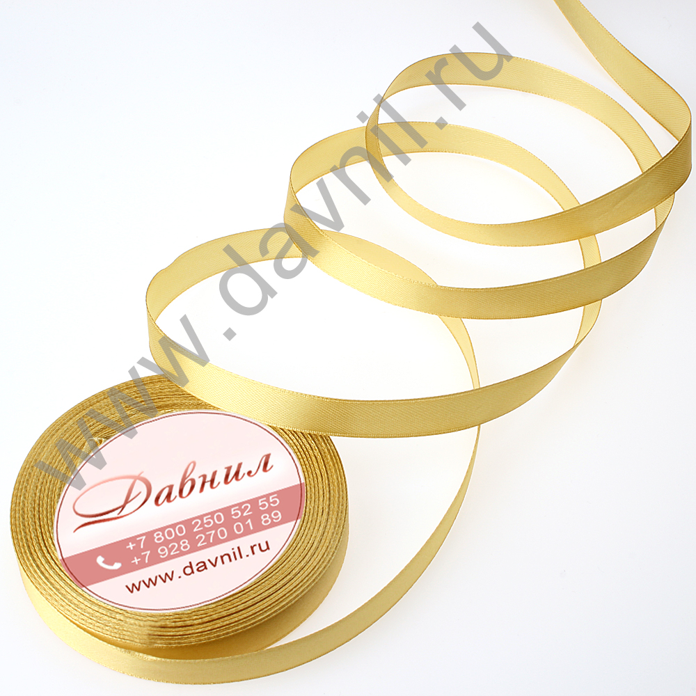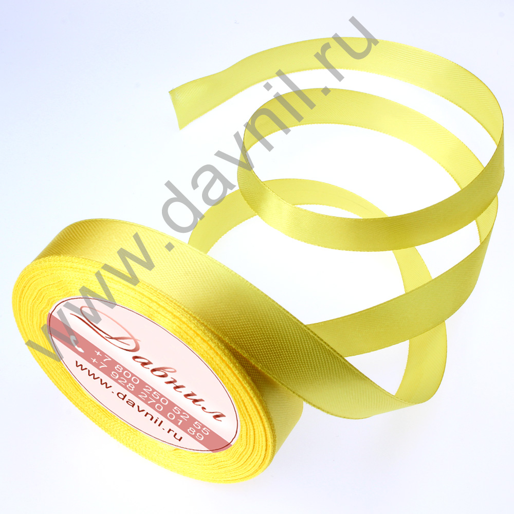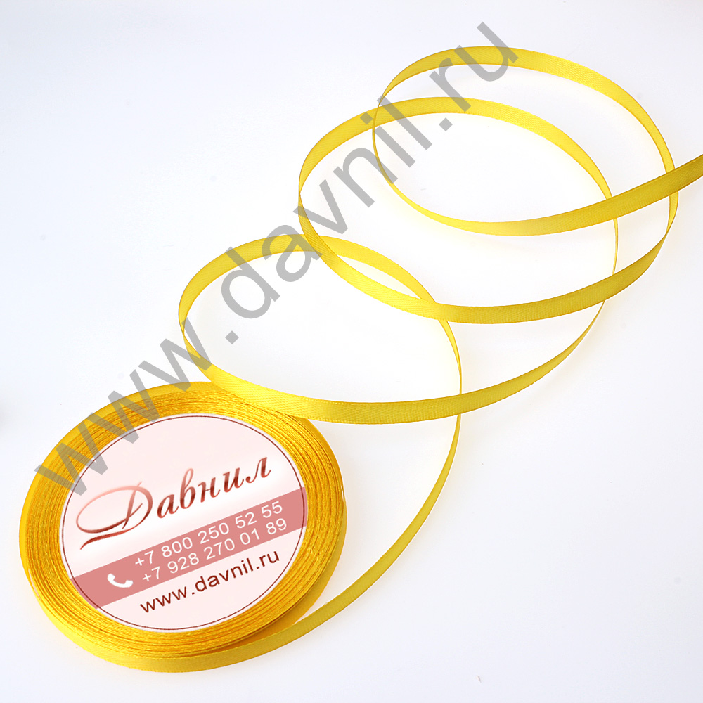 Лента атласная 0,6 см*25 ярдов жёлтая 132