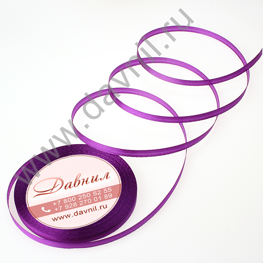 Лента атласная 0,6 см*25 ярдов фиолетовая 046