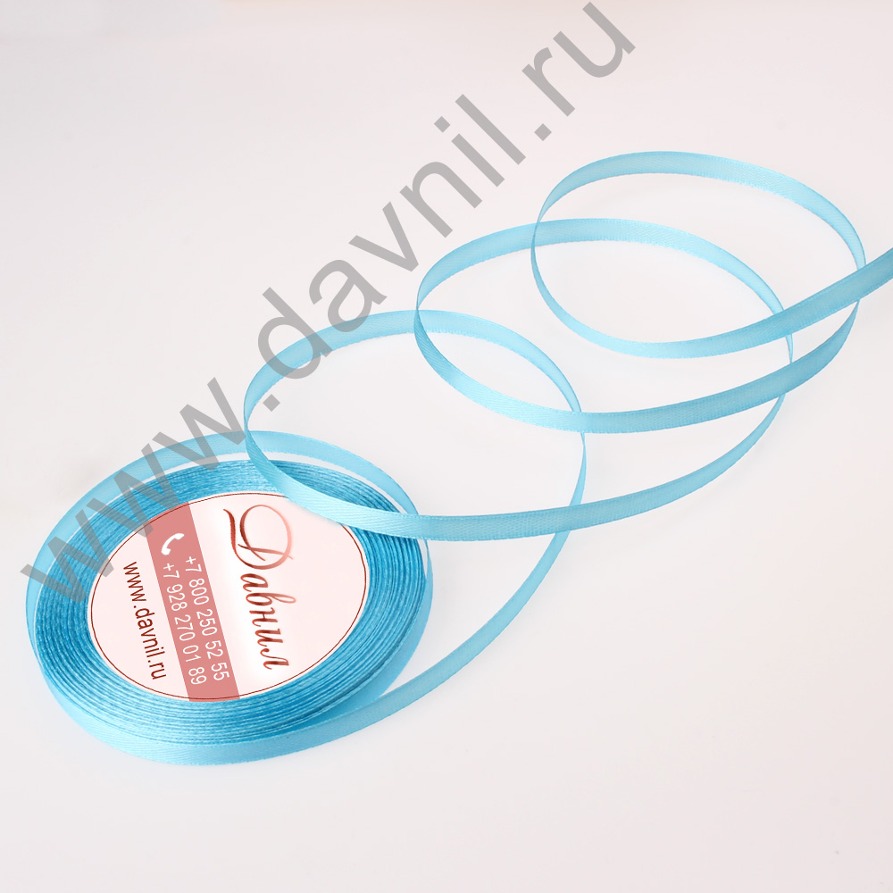 Лента атласная 0,6 см*25 ярдов голубая 187