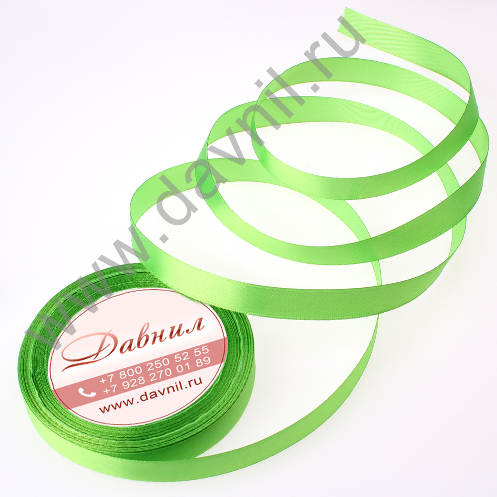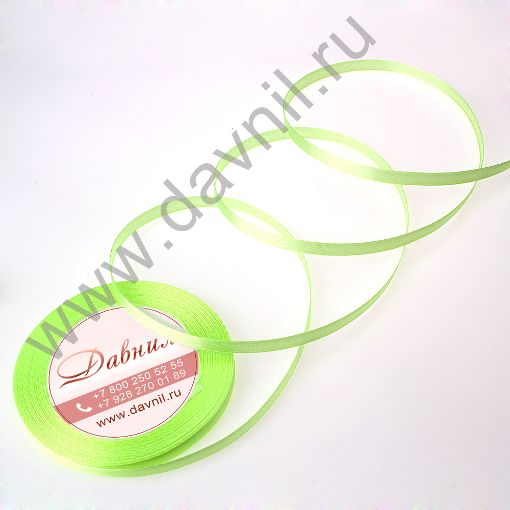 Лента атласная 0,6 см*25 ярдов салатовая 051